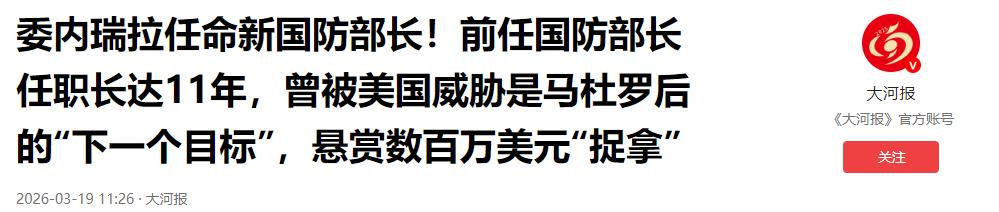 委内瑞拉新总统终于动手了,解除委国防部长职务,这下谁是内奸看清楚了! 2026年3月19日,委内瑞拉代理总统加布里埃尔·罗德里格斯做出了决定:正式解除弗拉基米尔·帕德里诺·洛佩斯的国防部长职务。这显然是对内部权力结构的一次彻底清洗。 2026年3月中下旬,委内瑞拉政坛传出重磅消息,当地时间3月18日,委内瑞拉代理总统德尔西·罗德里格斯正式下达任免令,解除了弗拉基米尔·帕德里诺·洛佩斯的国防部长职务,同时任命古斯塔沃·冈萨雷斯·洛佩斯将军接任国防部长一职。 这一决定看似是常规的军方人事调动,实则是委内瑞拉当局对内部权力结构的一次彻底梳理和调整,明眼人都能看出来,这是代总统掌权后,针对核心军政权力做出的关键布局,绝非临时起意的小事。 这次被免职的帕德里诺,可不是普通的军方官员,他从2014年开始担任委内瑞拉国防部长,在这个核心岗位上一干就是11年,是委内瑞拉军方的资深元老,手握重兵、根基深厚,长期掌控着委内瑞拉的国防军事大权,也是此前委内瑞拉政坛举足轻重的人物。 而做出任免决定的德尔西·罗德里格斯,是委内瑞拉现任代理总统,今年1月临危履职接手政务,掌权之后一直忙着稳定局势、理顺各方权力关系,这次换掉任职超十年的国防部长,是她上任以来力度最大、影响最深远的人事决策。 按照官方发布的信息,这次任免程序十分正式,代总统德尔西·罗德里格斯通过社交媒体公开发文官宣,既明确免去了帕德里诺的防长职务,也对他过去多年的工作表达了感谢,同时透露会为帕德里诺安排新的职务。 虽然官方表述温和,但从委内瑞拉当前的政治局势来看,这次换人本质上就是对内部权力圈层的一次清洗,目的就是把核心军事权力牢牢掌握在可靠的人手里,彻底理顺军政权力的衔接关系,避免出现权力分散、政令不通的情况。 很多中老年朋友可能会疑惑,好好的国防部长,为什么说换就换?其实结合委内瑞拉当下的处境就能想通。 今年年初,委内瑞拉遭遇外部势力干预,国内政局出现波动,代总统德尔西·罗德里格斯接手后,面临的首要任务就是稳住国内局势、掌控核心权力,而军队是稳定局势的关键底牌,国防部长更是核心中的核心。 帕德里诺任职时间太久,在军方形成了固定的势力圈子,对于刚掌权的代总统团队来说,这种长期扎根的元老势力,很容易导致权力掣肘,甚至影响政令的执行。 而且这次接任的新任防长冈萨雷斯,也是军方背景深厚的老将,今年66岁,此前担任委内瑞拉总统卫队指挥官兼军事反间谍总局局长,今年1月份刚被代总统提拔到关键岗位,属于代总统团队一手提拔起来的亲信力量。 他还曾担任委内瑞拉内政、司法与和平部长,既有军方实操经验,又懂政务管理,对代总统的执政思路和稳定局势的目标高度认同。 把这样的人放到国防部长岗位上,就是为了确保军方彻底服从当局指挥,让军事力量真正成为维护国内稳定、守护国家主权的后盾。 这件事发生后,委内瑞拉国内并没有出现大的动荡,军方也保持了平稳状态,这说明代总统的这次决策是经过周密谋划的,不是贸然行动。 从实际效果来看,这次防长换人,直接打破了原有军方的权力格局,把分散的核心军事权力收归到当局可控范围内,彻底扫清了执政路上的权力障碍。 对于委内瑞拉当局来说,只有牢牢掌控军队,才能稳住国内治安、应对外部压力,这也是这次人事调整最核心的目的。 咱们再客观说说这次变动的影响。对委内瑞拉国内而言,这是一次必要的权力规整,通过更换核心军方负责人,让整个军政体系的运转更顺畅,避免了内部权力内耗,也让普通民众的生活能更快回归稳定。 对外部而言,这一举措也释放了明确信号:委内瑞拉当局有能力掌控国内局势,不会任由内部势力掣肘,更不会屈服于外部干预,会坚定按照本国的需求推进治理、维护主权。 很多人觉得国际时事离自己很远,但其实这类核心人事变动,往往能看出一个国家的治理思路和稳定决心。 委内瑞拉这次换掉国防部长,没有搞激进动作,而是按程序平稳推进,既完成了内部权力结构的优化,又守住了局势稳定的底线。 说白了,就是掌权者把最关键的军事权力,交到了自己信得过、能听话、能干事的人手里,彻底理顺内部管理体系,这也是很多国家在特殊时期稳定大局的常规做法。 整件事没有任何复杂的弯弯绕绕,就是委内瑞拉当局在特殊局势下,为了稳固执政根基、理顺权力关系做出的务实决策。 原防长帕德里诺的离任,标志着委内瑞拉军方一个时代的落幕;新任防长冈萨雷斯的上任,意味着委内瑞拉军政权力进入了新的运转阶段。