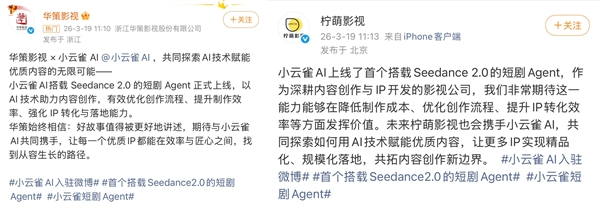 生成质量与制作效率的提升,也让更多行业从业者看到了短剧Agent的潜力。此次小云雀短剧Agent功能上线后,华策影视、柠萌影视等影视制作公司相继发声。华策影视表示,华策始终相信好故事值得被更好地讲述,期待与小云雀共同携手,让每一个优质IP都能在效率与匠心之间,找到从容生长的路径。柠萌影视表示,未来会携手小云雀AI,共同探索如何用AI技术赋能优质内容,让更多IP实现精品化、规模化落地,共拓内容创作新边界,柠萌影视评价称:“作为深耕内容创作与IP开发的影视公司,我们非常期待这一能力能够在降低制作成本、优化创作流程、提升IP转化效率等方面发挥价值。”
