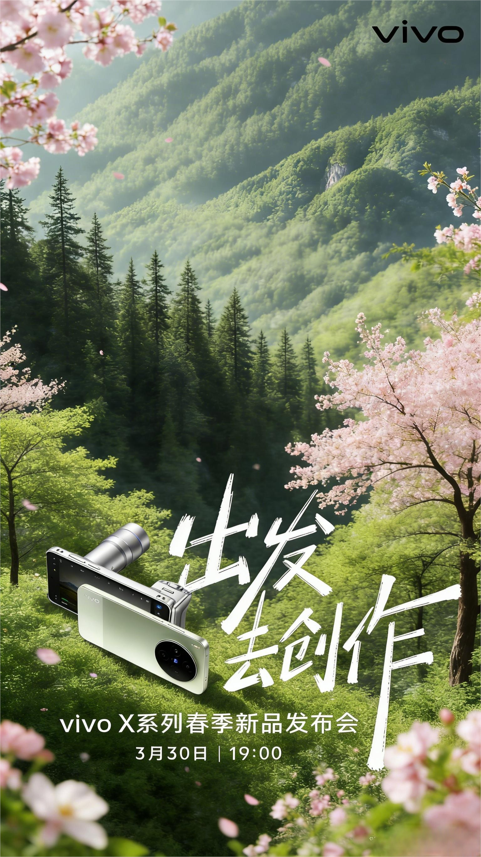 看到大家都在二创vivo春季发布会的海报,我也稍微玩了一下换个风格给原来的背景换成山林,这不春天的感觉就来了嘛