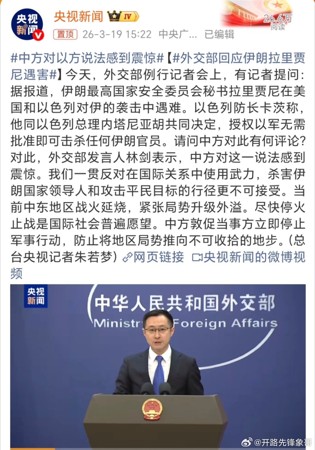 外交部回应伊朗拉里贾尼遇害以方这不就是妥妥的土匪吗?