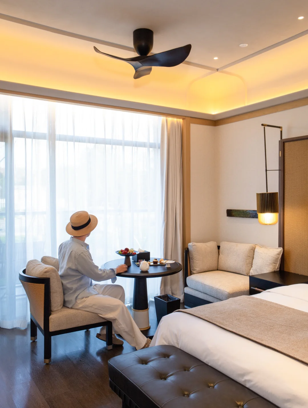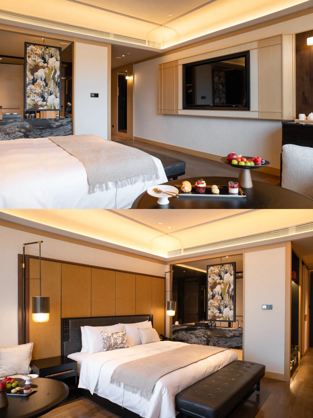 ✔️客房框景入室,原木温润,黑色点缀尽显高级