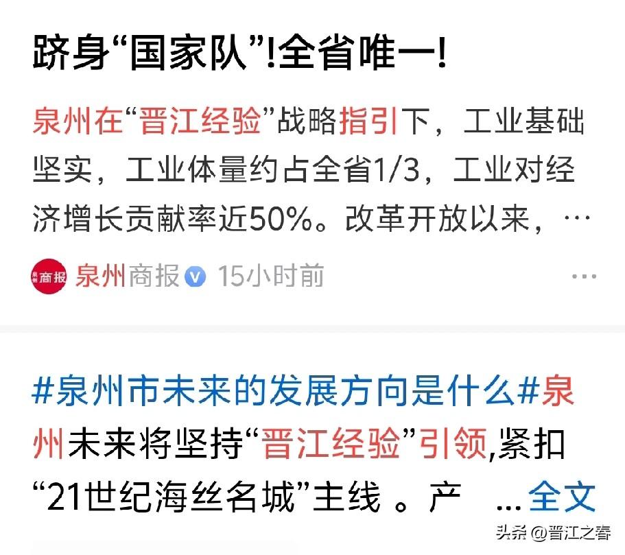 传承弘扬,创新发展″晋江经验″! ″晋江经验″ 写入‘十五五’规划纲要! ″晋江经验″ 写入中央文件。 ″晋江经验″ 正式入法,写入《福建省民营经济促进条例》。 泉州未来发展以″晋江经验″为引领。 晋江湧立潮头,再接再厉!