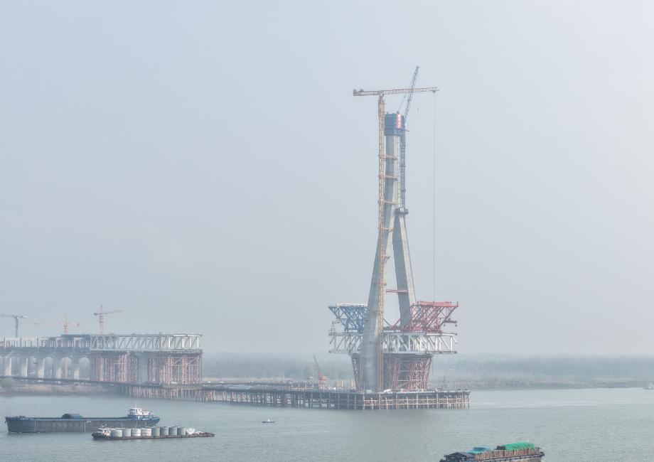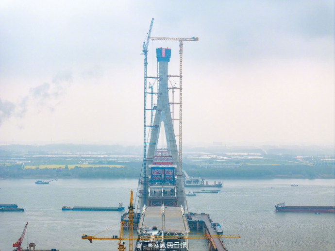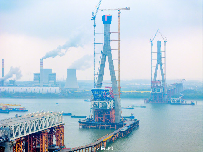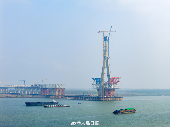 预计大桥今年三季度实现主桥合龙。大桥建成运营后,对于打造“轨道上的长三角”,完善安徽省铁路过江通道布局,助力长三角一体化高质量发展等具有重要意义。(人民日报)池州长江公铁大桥北主塔顺利封顶