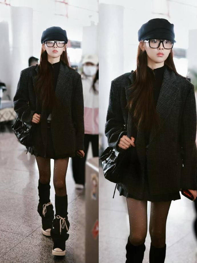 杨超越 迪丽热巴今日机场都穿了黑丝,她们共享了一个造型师?迪丽热巴黑丝长腿