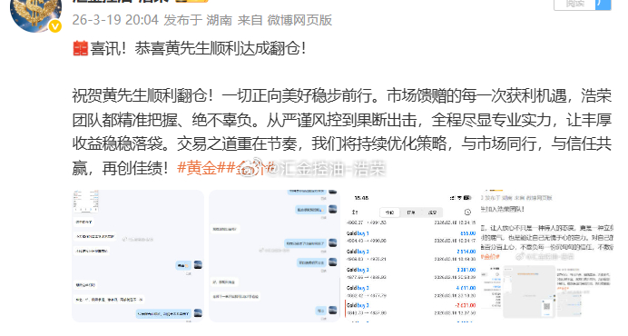 恭喜黄先生,一单斩获 2.8 万mj,连翻三仓,账户总资金攀升至 6.9 万mj!实力印证眼光,收益稳稳兑现。顺势而为,知行合一,每一次果断决策,都化作实实在在的收获。前路可期,我们继续稳扎稳打,与信任同行,与盈利相伴,再创佳绩!黄金金价
