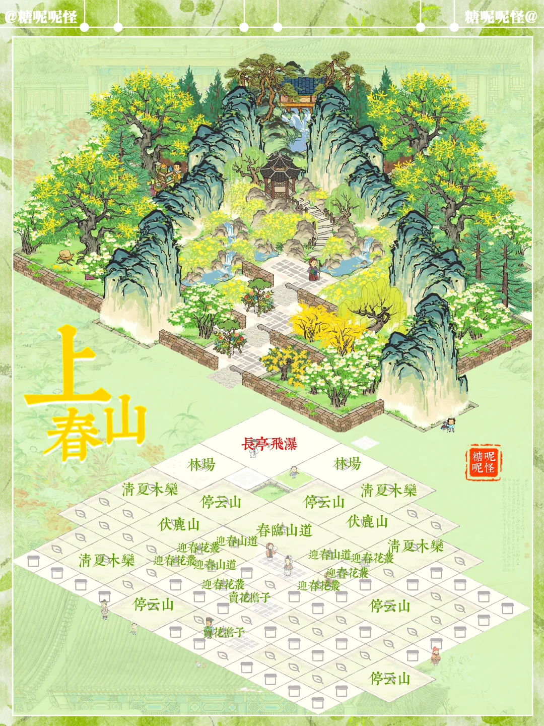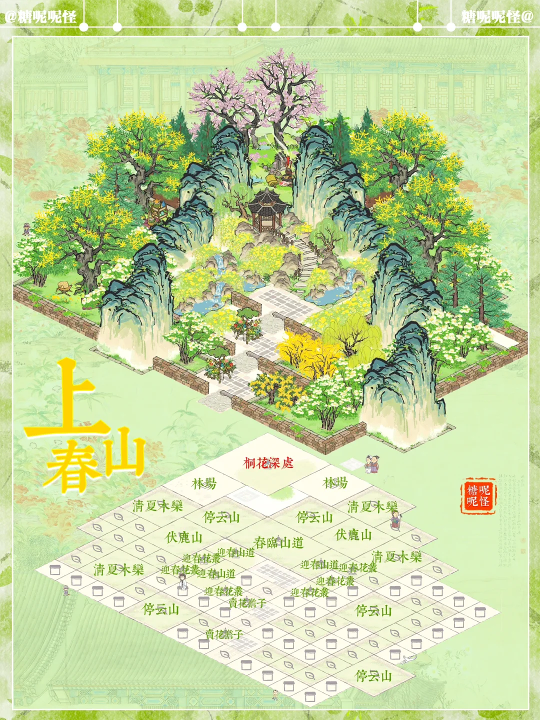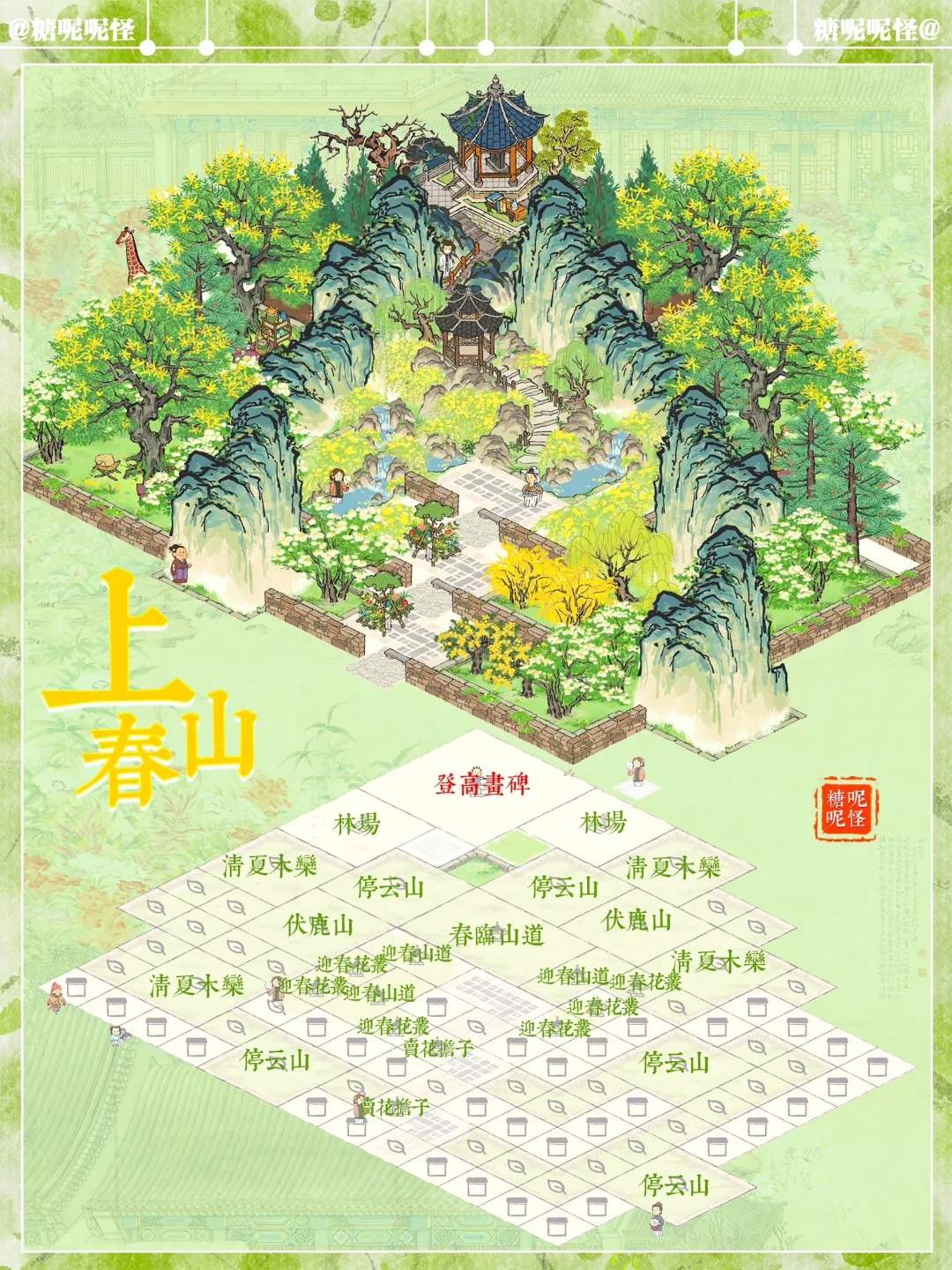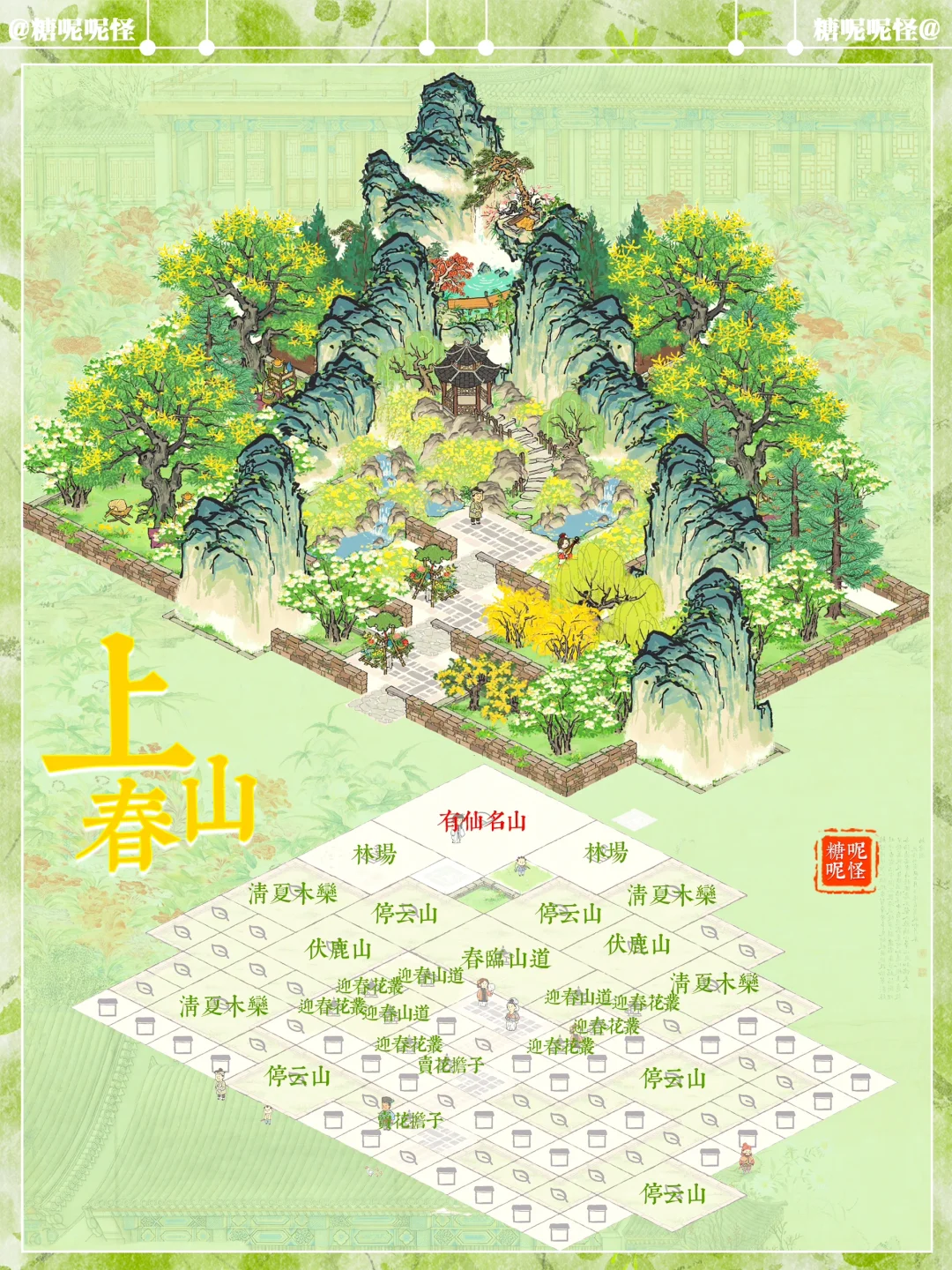 🌼地基图已更新 🌼上春山系列搭配 🌼建筑:春临山道|迎春山泉|迎春花丛|停云山|伏鹿山|不老山|有仙名山|叠云山|登高画碑|桐花深处
