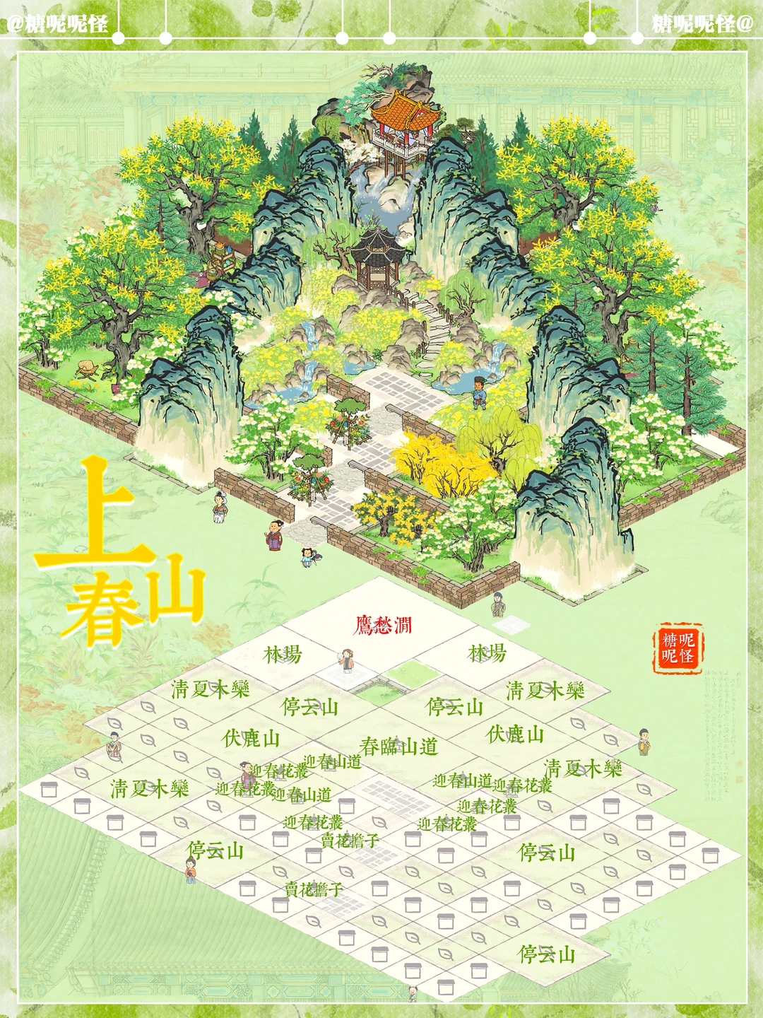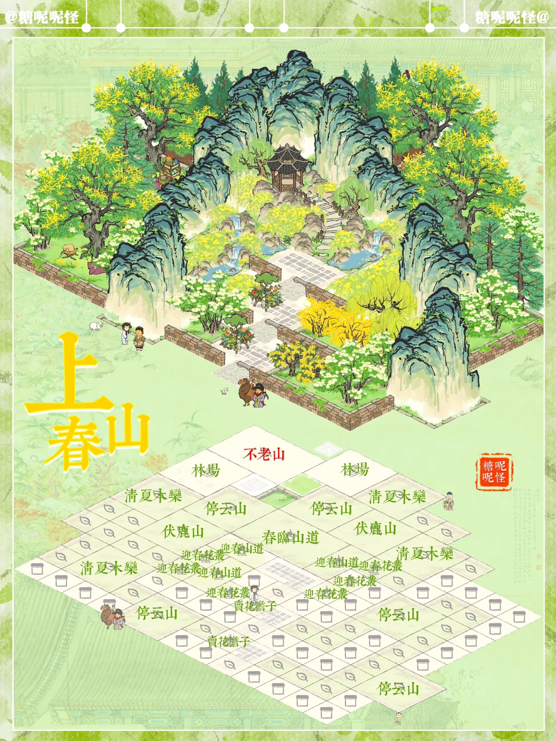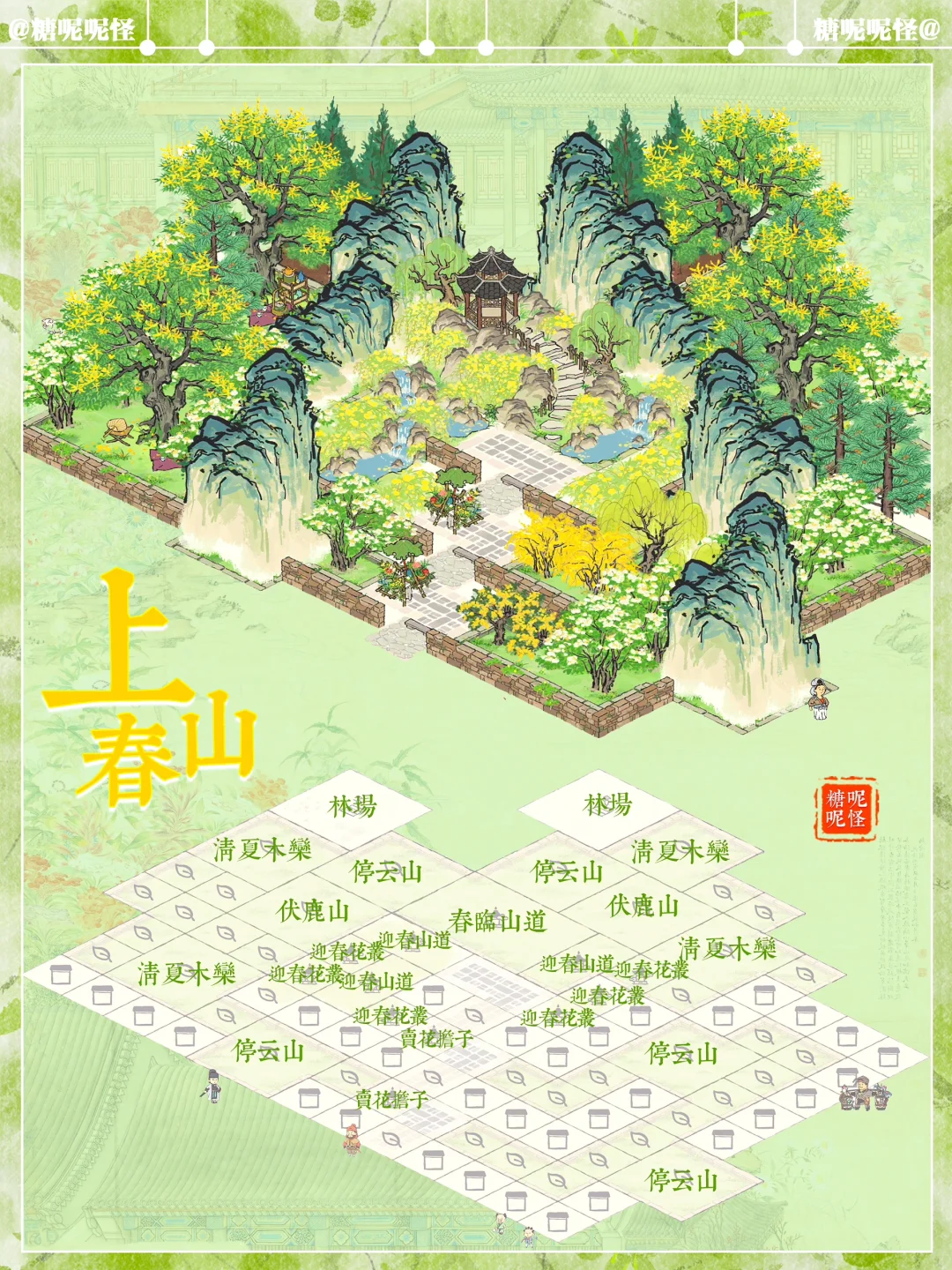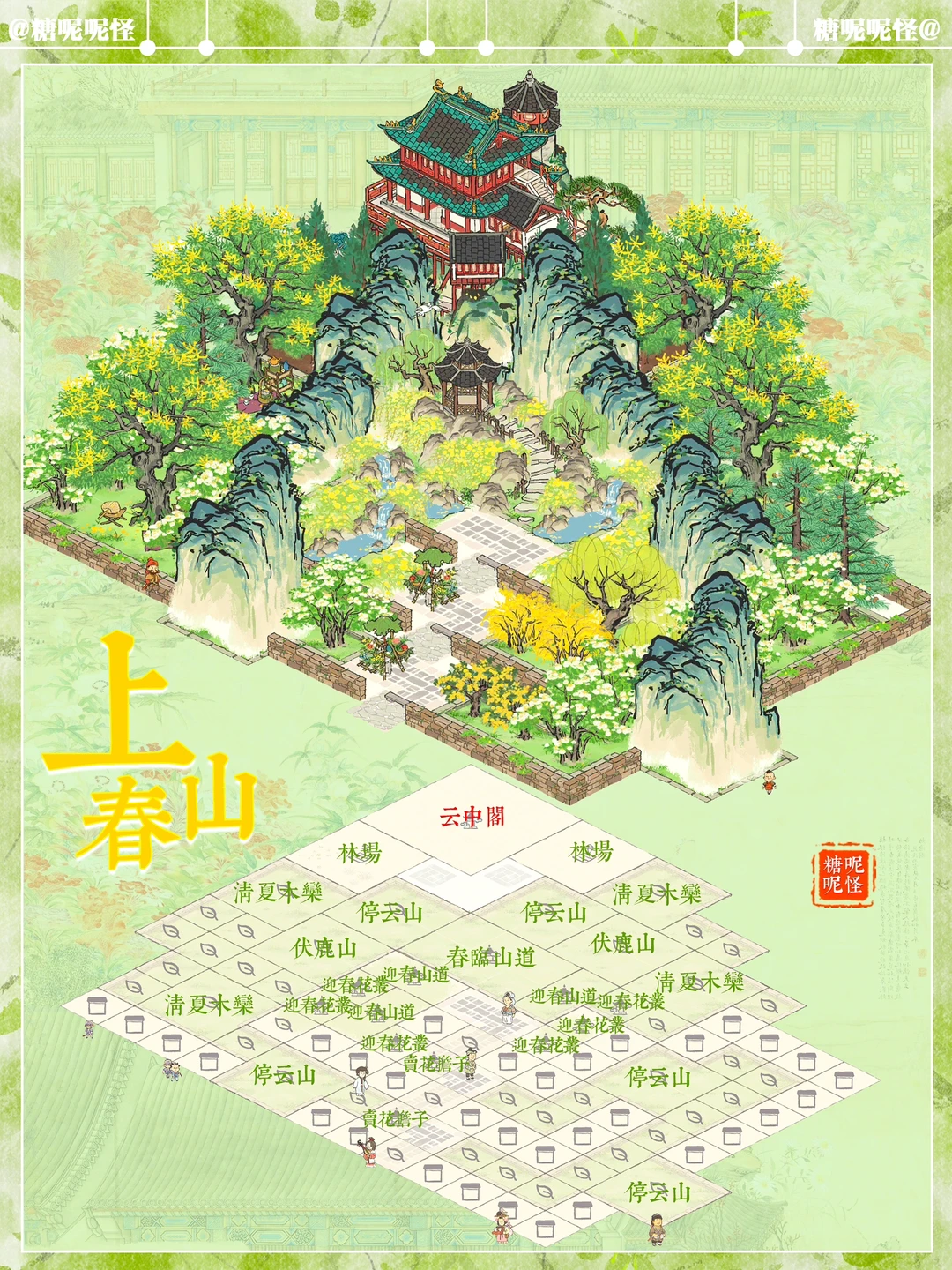 🌼地基图已更新 🌼上春山系列搭配 🌼建筑:春临山道|迎春山泉|迎春花丛|停云山|伏鹿山|不老山|有仙名山|叠云山|登高画碑|桐花深处