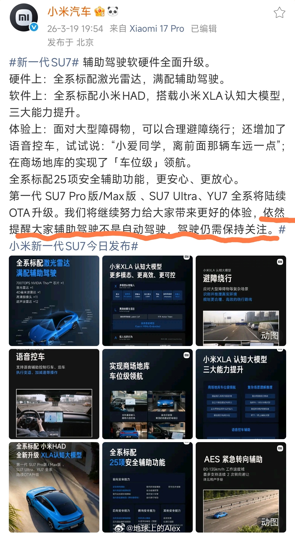 能力非常强,但是也要做到对道路交通安全宣传负责这就是小米对于社会安全问题的态度小米重申辅助驾驶不是自动驾驶