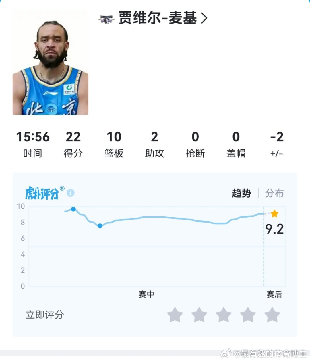 麦基这么强追到二分了给人家下了,15分钟22分10篮板