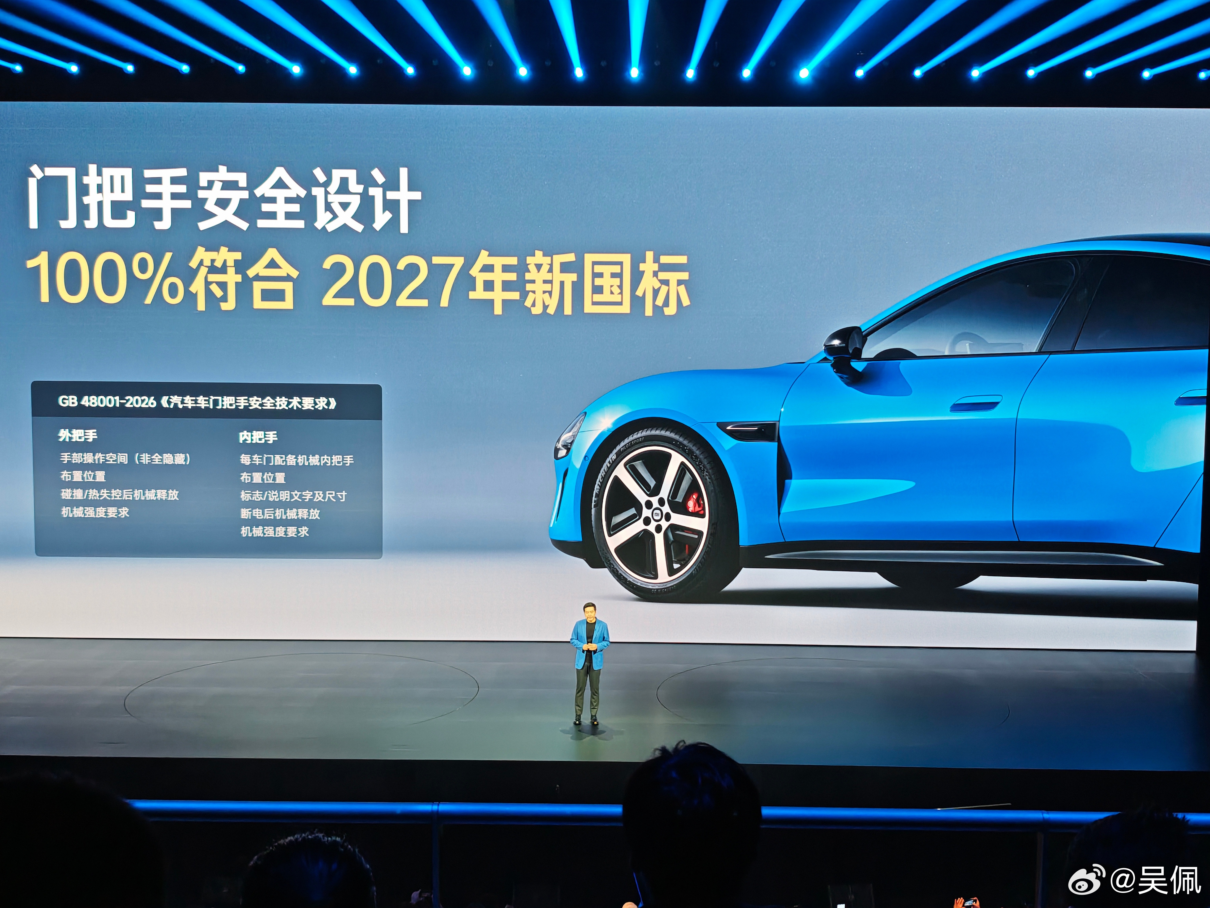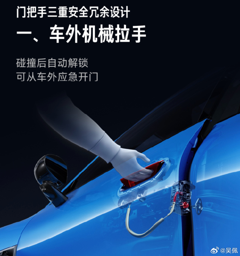 门把手已经提前满足2027年的新国标了,三重防护你放心。小米发布会 小米汽车雷军谈新一代SU7门把手雷军回应新一代SU7门把手设计