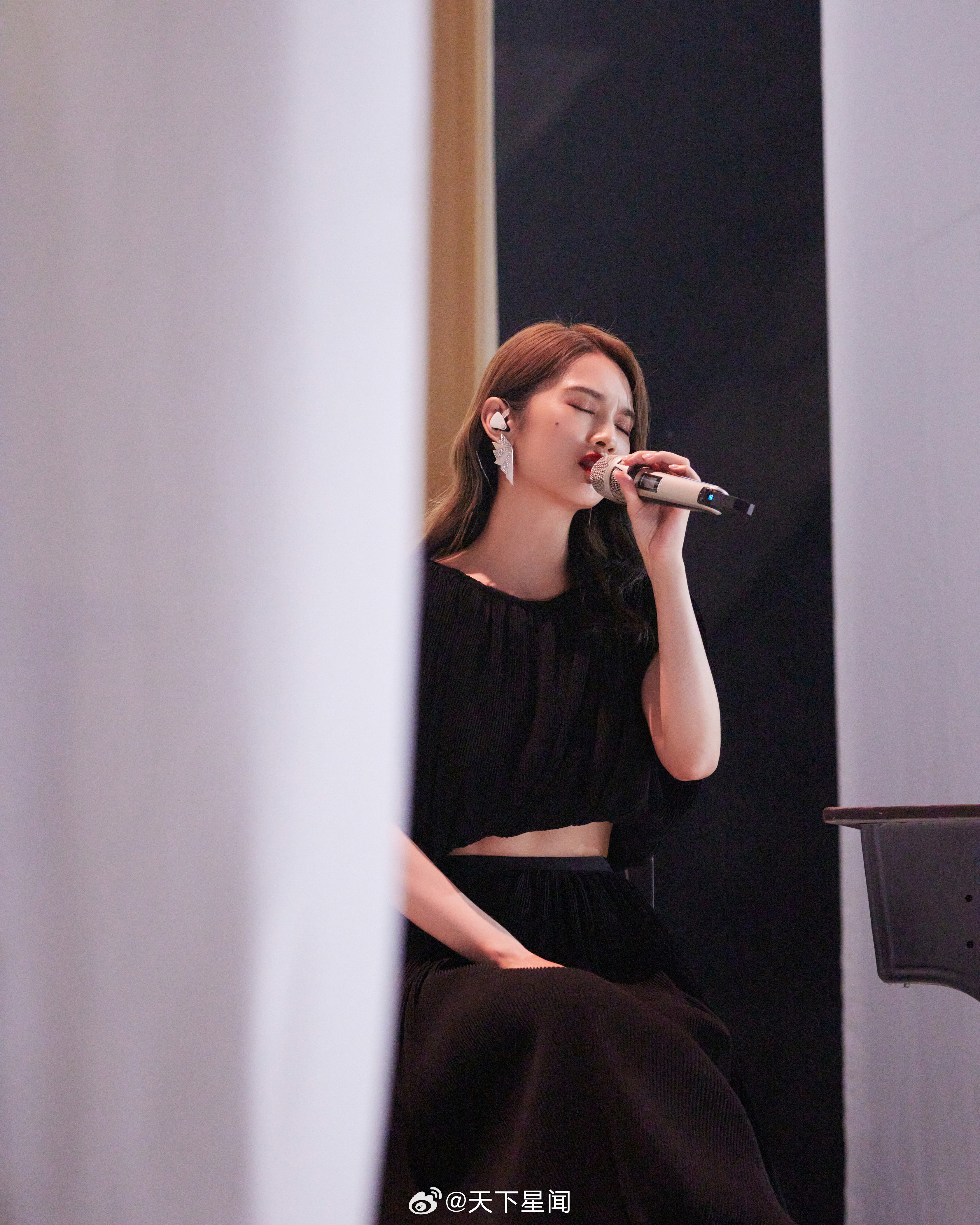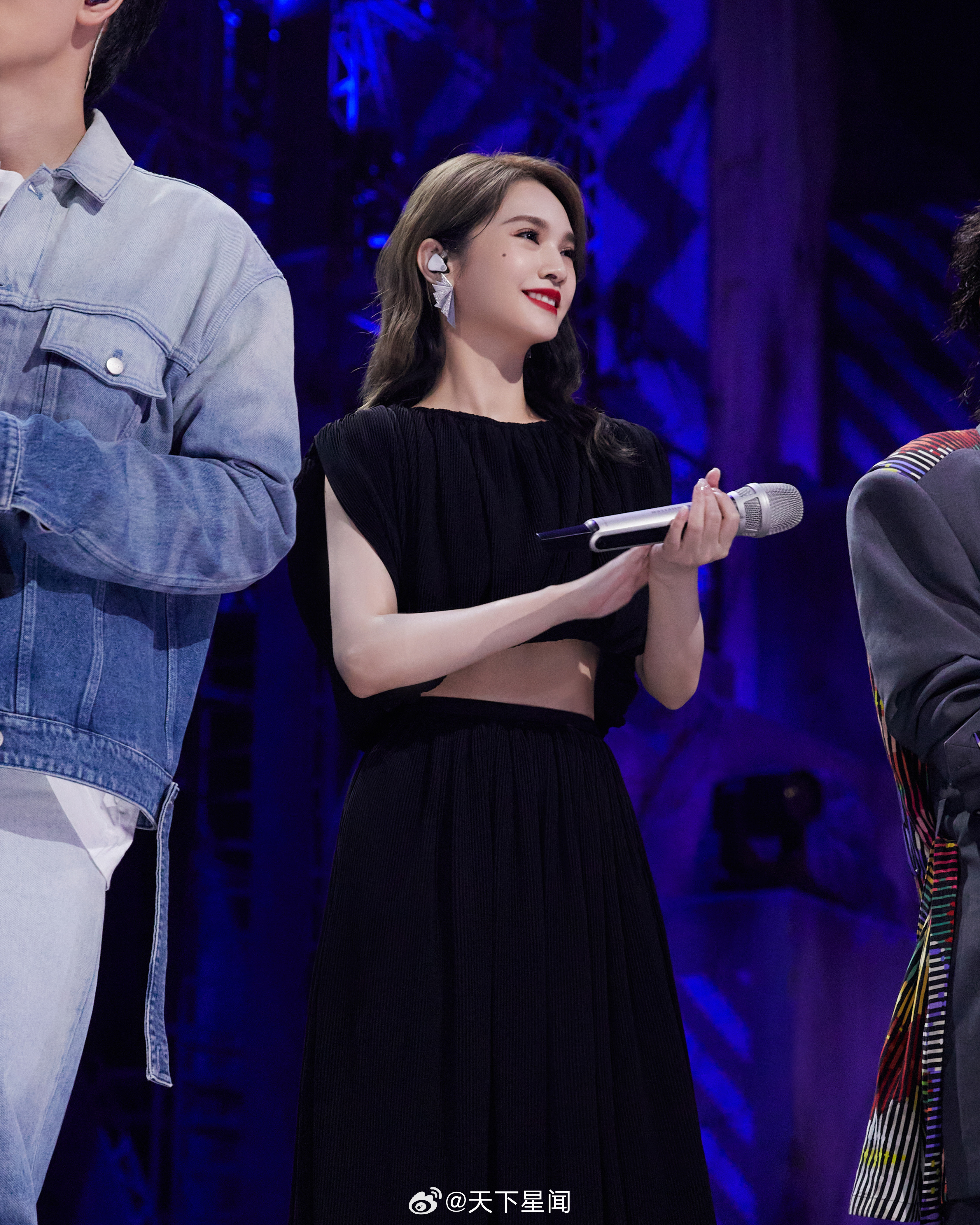 刘亦菲这条裤子挺养生,毕竟降温了肚脐眼必须护住啊