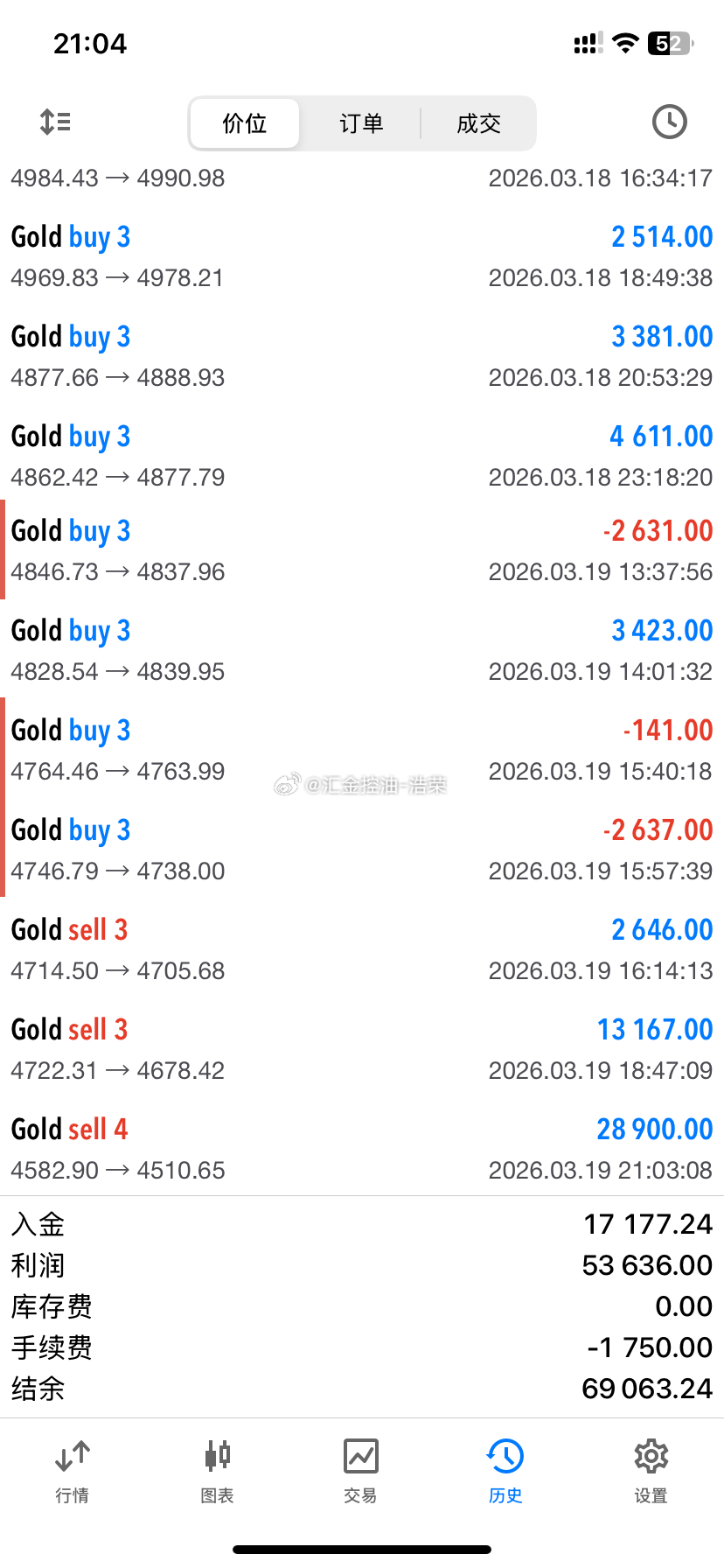 2026.3.19日操作7单,4胜1平2负!共收割1400点利润。不必遗憾也不必迷茫, 回不去的日子总有它回不去的理由, 路在人走,事在人为,你就做你自己, 好好生活。今天到此收工,晚安。黄金 金价 原油 晚安