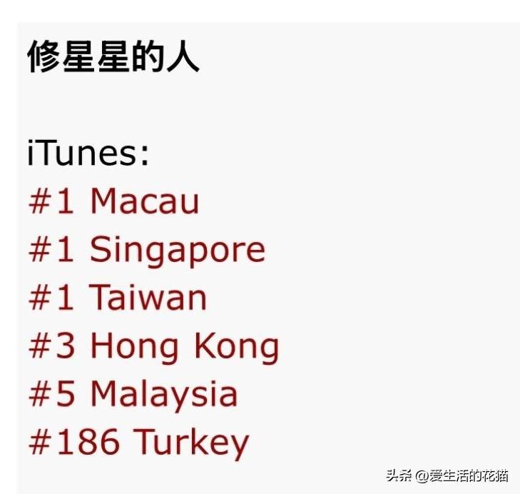 哇塞!《修星星的人》新加坡第一位!马来西亚!甚至土耳其上榜!!港澳台排名都很前! 土耳其诶,这文化跨度绝了!港澳台也稳居前列!感觉这首歌真的在悄悄治愈整个华语圈。 可能就是因为这种温柔又孤独的意境,配上简单真挚的旋律,反而能跨越语言和文化的界限。现在大家都需要被治愈吧。 看到好音乐真的能被这么多人听见,心里莫名有点感动。深深值得!太牛了!