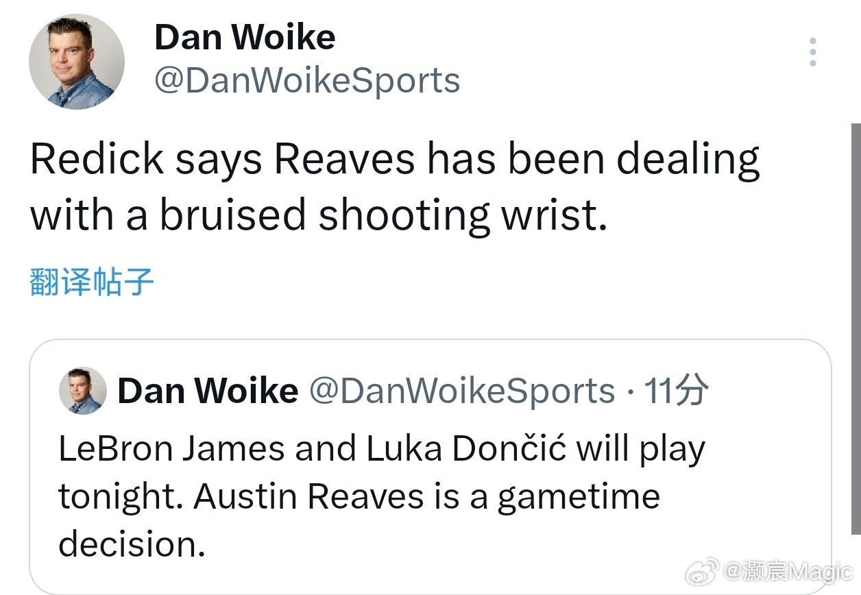 Dan Woike:詹姆斯和东契奇今天都打!里弗斯赛前决定!