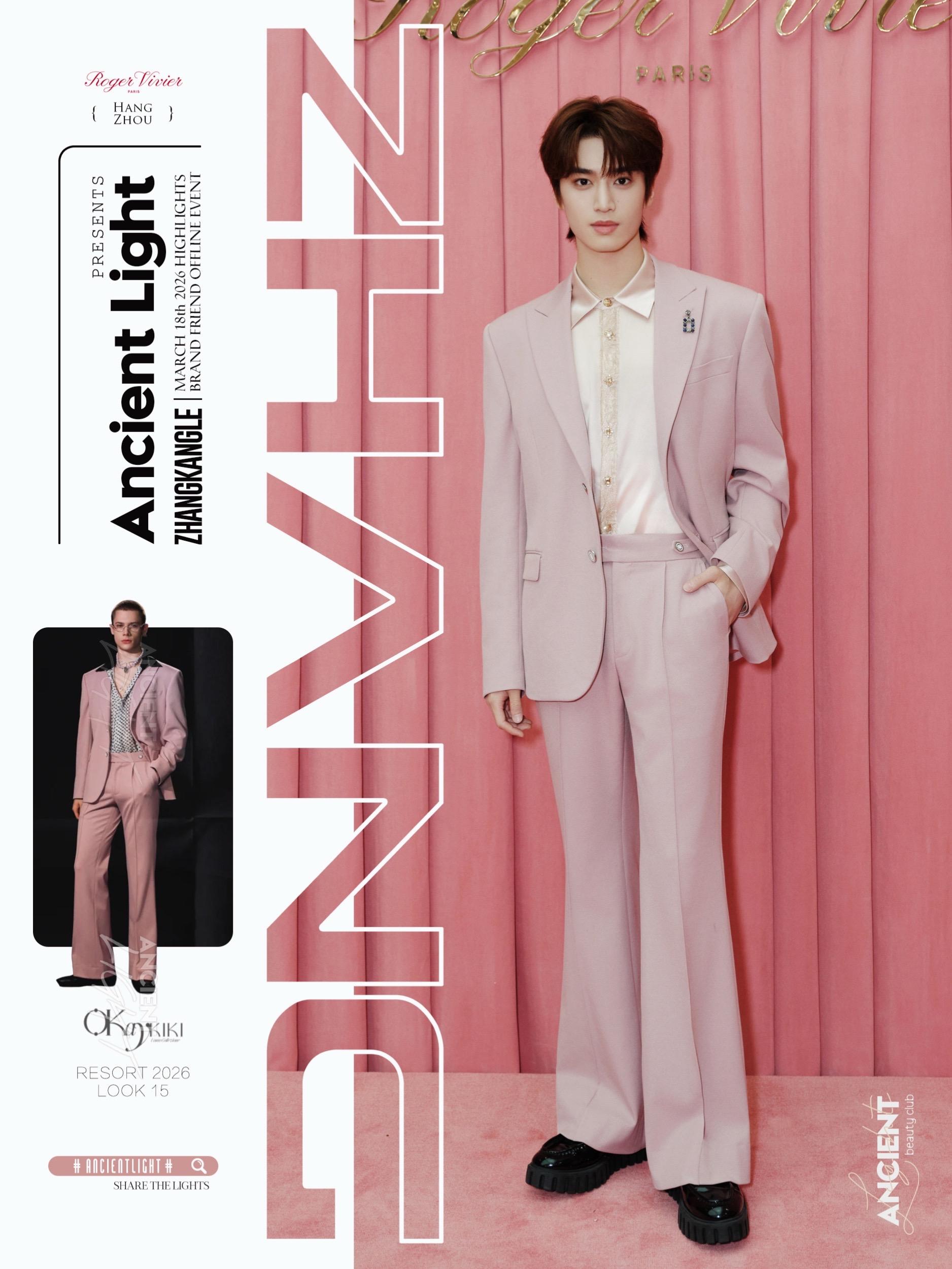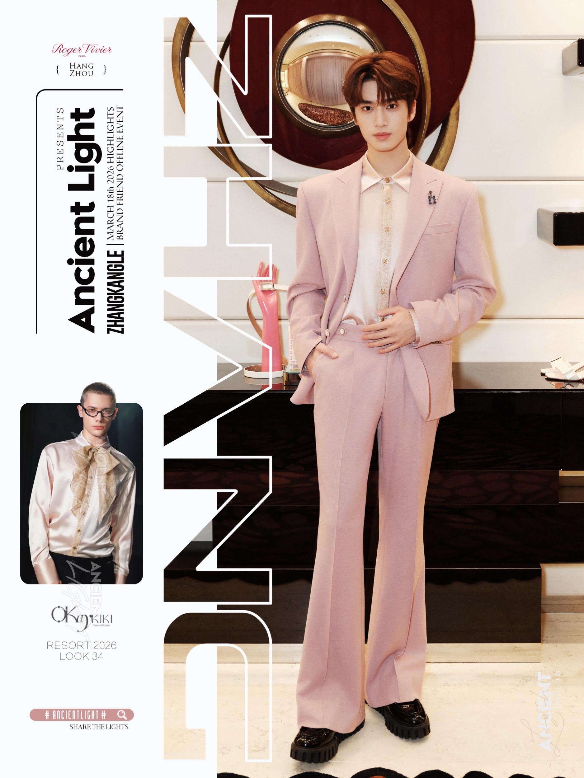 点解劝你春日着粉色⁉️看张康乐这样就懂了💗 春日的暖阳,张康乐现身杭州。春色里怎能少了一抹柔雾粉,西装裹挟着温柔质感,内搭的缎面衬衫与蕾丝领口,在光影下流淌着不经意的精致。搭配 Viv' Go-Thick 男士乐福鞋与 Tres Vivier 钻扣配饰。动静之间,没有刻意张扬,只有一份恰到好处的轻松与愉悦。