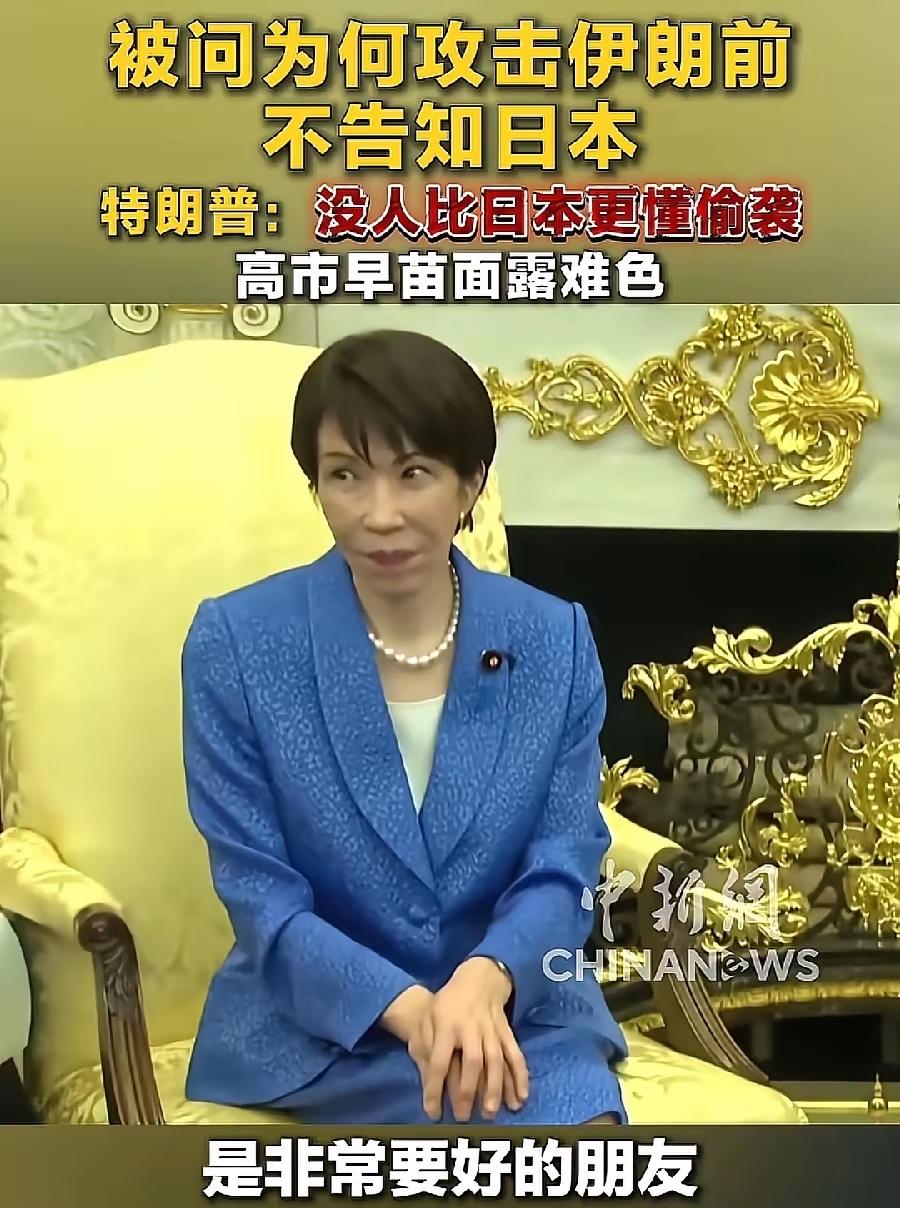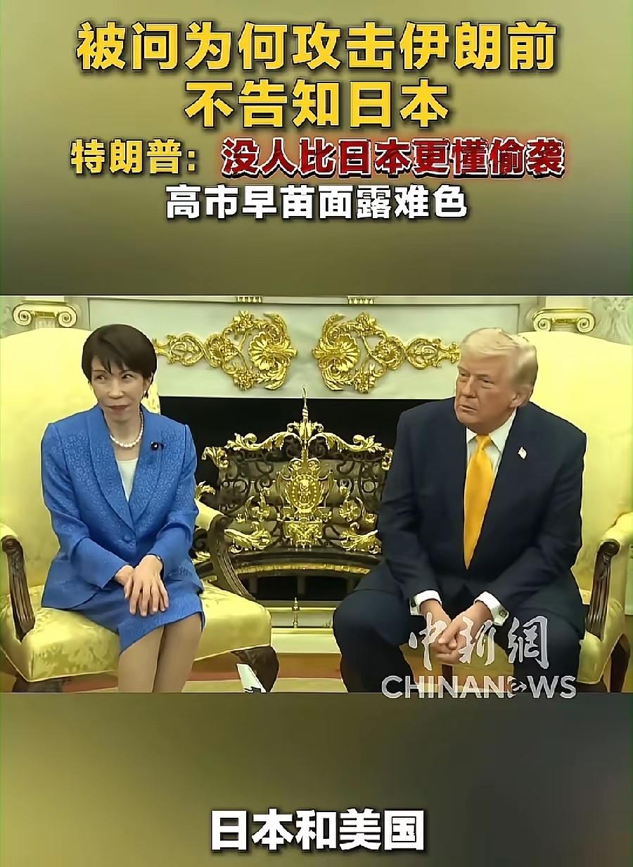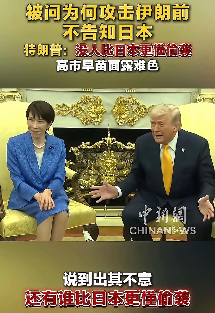 特朗普当高市早苗的面提日本偷袭珍珠港,将高市打惨了 新华社3月19日报道,特朗普在白宫会晤到访的日本首相高市早苗,在回答媒体提问时,将美国袭击伊朗与日本在第二次世界大战期间偷袭珍珠港相提并论。他说:“我们想要出其不意。还有谁比日本更懂得出其不意呢?你为什么不跟我说说珍珠港?” 特朗普这番话惹得现场一片笑声,坐在一旁的高市早苗睁大了眼睛,在椅子上挪了挪身体,脸上努力保持着微笑。 1941年12月7日,日军偷袭夏威夷美国海军基地珍珠港,摧毁、重创多艘美国军舰和上百架飞机,导致美方约2400人死亡。次日,美国对日本宣战,太平洋战争爆发。这一事件被时任美国总统罗斯福称为“国耻”,让美国人至今不忘。