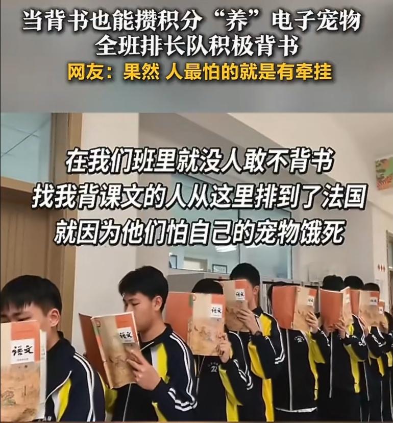 吉林一位老师,最近用一只电子宠物,把全班的学习动力直接拉满——不是靠骂,不是靠罚,是靠“怕”。 老师推出了一套“电子宠物养成激励机制”:学生们背书过关,就能给自己的电子宠物赚口粮。结果呢?全班疯了,抢着排队找老师背书,队伍从教室排到了走廊,老师直呼:“找我背课文的人排到了法国!” 网友看完笑喷:“果然,人最怕的就是有牵挂。”“小时候为了宠物不饿死,我连奥数都愿意做。”“建议推广到职场:不完成KPI,电子宠物就饿死。” 有人说,这是老师的高明之处——把学习从“任务”变成“责任”。孩子们不是为了分数背,是为了自己的“崽”不饿死背。虚拟的小宠物,成了最有效的“学习监督员”。 更妙的是,这种方式没有惩罚,只有牵挂。你不背,你的宠物就饿着;你背了,它就能吃饱。孩子们在照顾宠物的过程中,不知不觉把课文背完了。 老师只负责站在讲台前,等着排队的学生一个个上来。队伍很长,但没人抱怨,因为每个人都觉得:我不是在背书,我是在救我的崽。 一只电子宠物,让全班变成了“有牵挂的人”。这届老师,真的懂孩子。