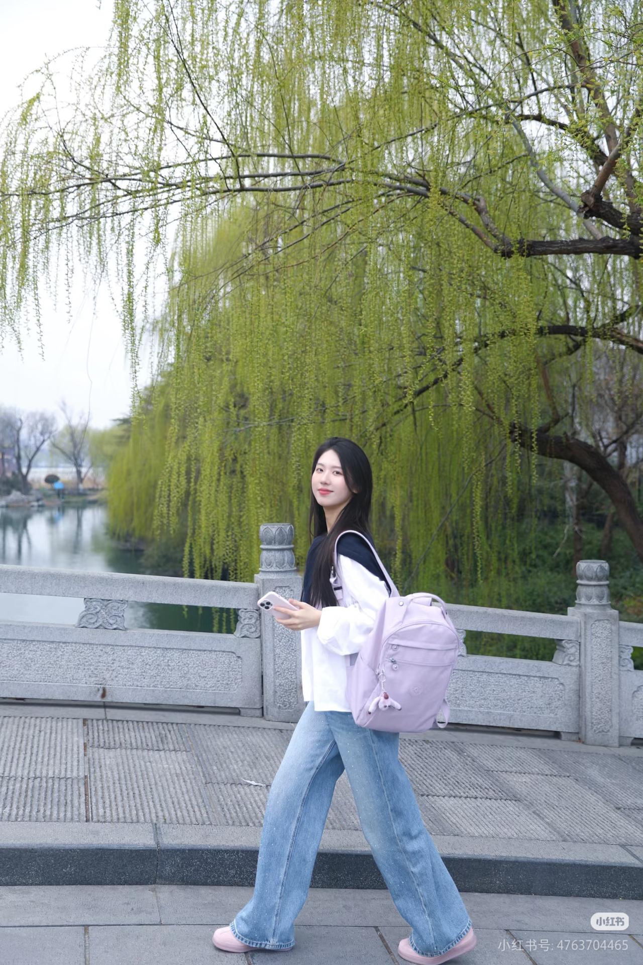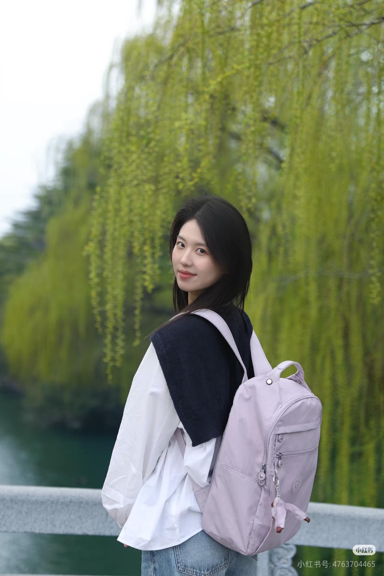 秋日漫步,长风衣与绿意相伴,自在悠然。