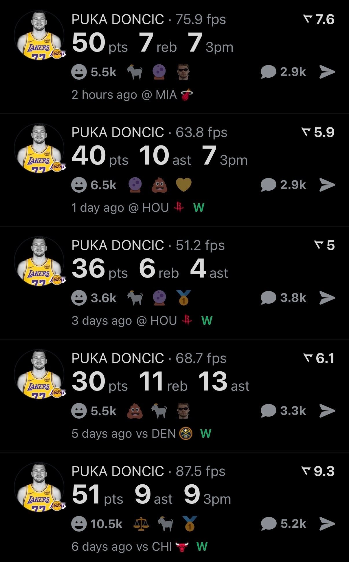 东契奇50分,5场比赛之内的第二个50+,背靠背两战90分了湖人vs热火NBA