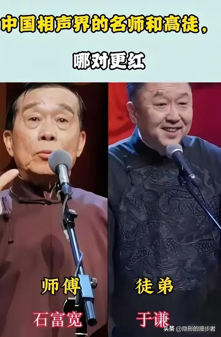 中国相声界有不少好师徒,一代传一代,把欢乐送到了千家万户。 从侯宝林带马季、马三立教常宝华,留下了传世的经典段子;到李金斗和方清平、冯巩与贾玲,让相声走进了更多普通人的生活;再到石富宽和于谦、郭德纲带着岳云鹏、郭麒麟,把相声说得火遍全国。 这些师徒靠着扎实的功底,把相声里的包袱和道理,刻进了几代人的记忆里。正是这一辈辈的传承,才让咱们的曲艺一直热热闹闹,充满烟火气。