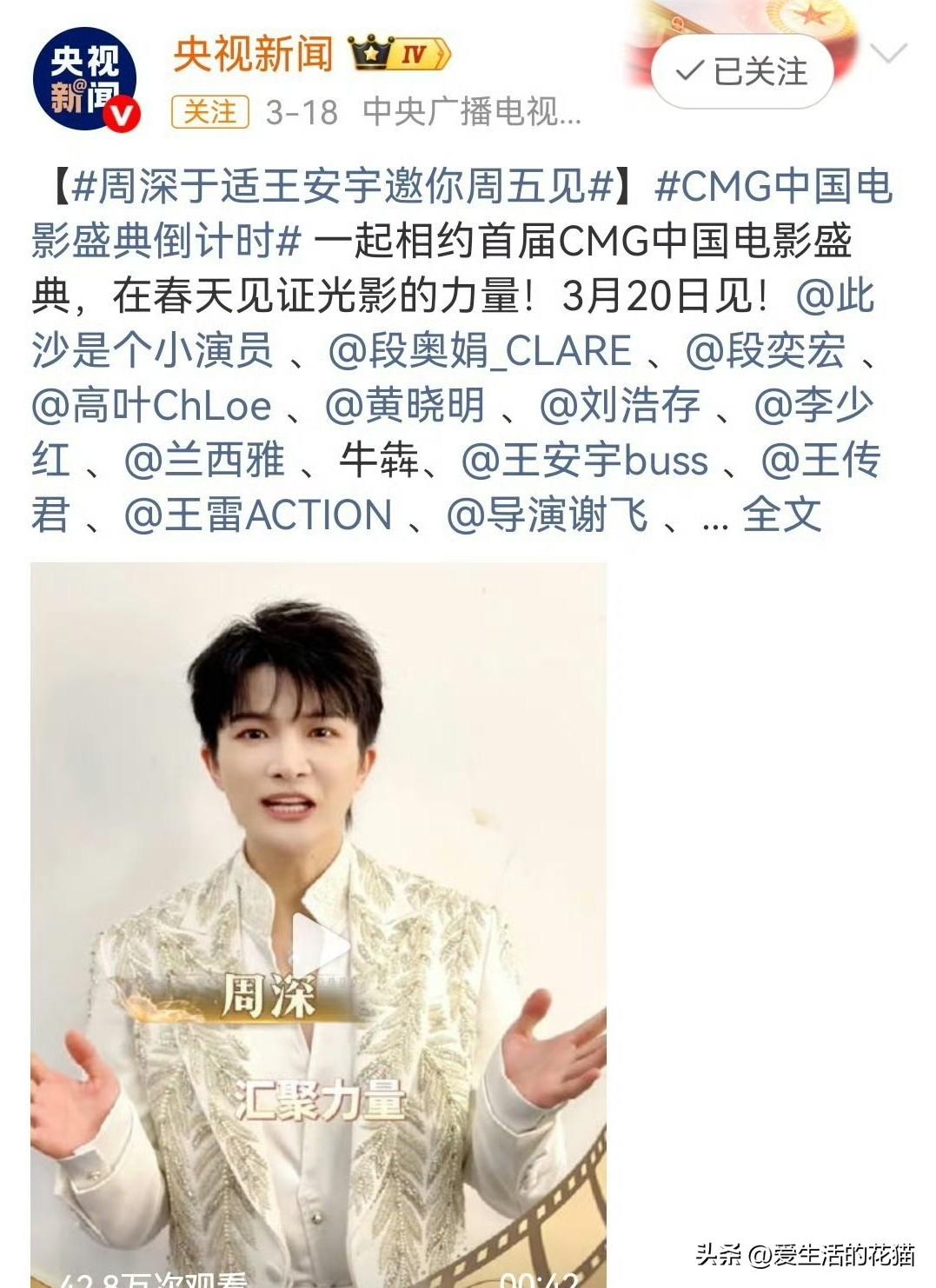 周深要以“影视金曲代表人物”的身份参加首届CMG中国电影盛典,今晚就献唱! 这可是国家级电影盛会诶,而且他还是唯一被邀请的专业歌手嘉宾,这排面也太顶了吧! 深深的影视金曲,那可真是数都数不过来。记得他在首届中国歌曲TOP排行榜上,凭《此生惟你》拿下最受欢迎影视歌曲奖,而且还是这个奖项的第一位得主呢! 这首歌我真的循环播放无数次,他那声线绝了,又空灵又有穿透力,听得人起鸡皮疙瘩。 对了,想起来他领奖那个画面,简直萌翻了!话筒自动适配他的身高,他站在那儿愣了一下,然后笑着说“第一次感觉这么可爱的话筒”。啊啊啊,这种细节真的太圈粉了,又强又可爱,谁能顶得住啊! 今晚盛典一定要蹲直播,深深这几年真是越来越厉害了,现在都成国家级电影盛典的御用歌手了,实至名归!
