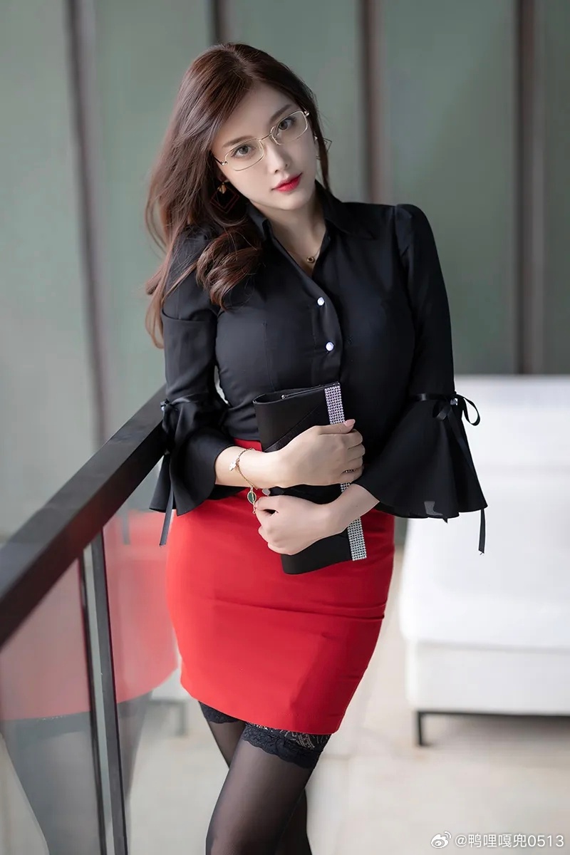 御姐热门美女美女 黑色深V包臀裙性感大长腿