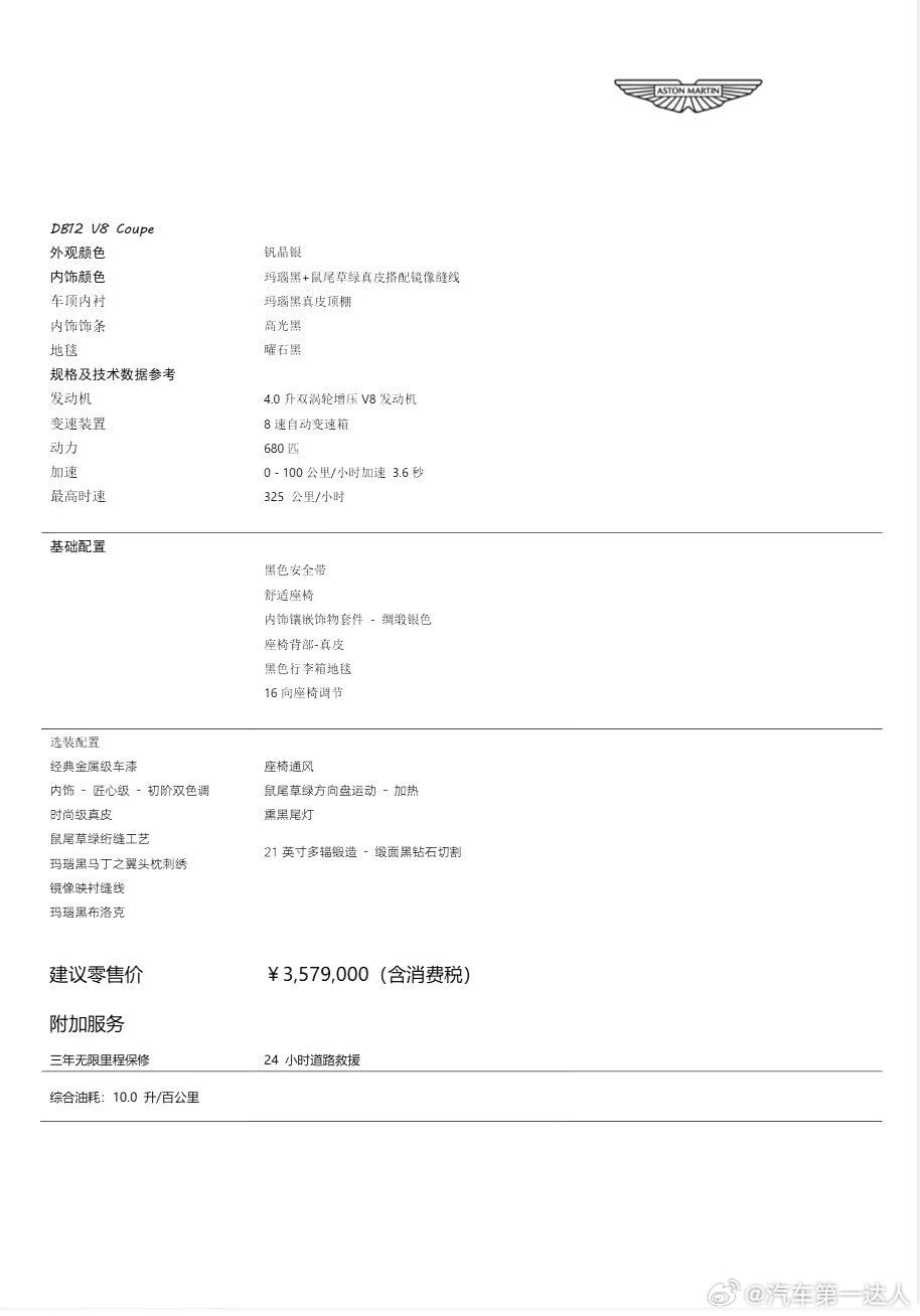 阿斯顿马丁 DB12,2025款 DB12 4.0T,高定版配色