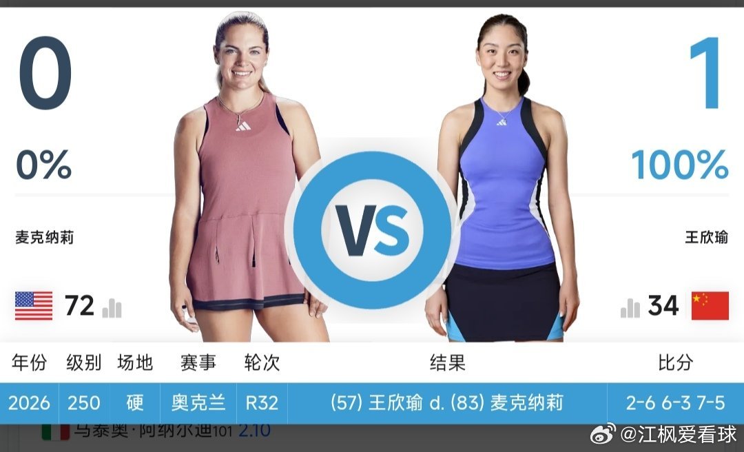 04:00左右 WTA1000迈阿密站女单第2轮王欣瑜🇨🇳 vs 麦克纳利🇺🇸