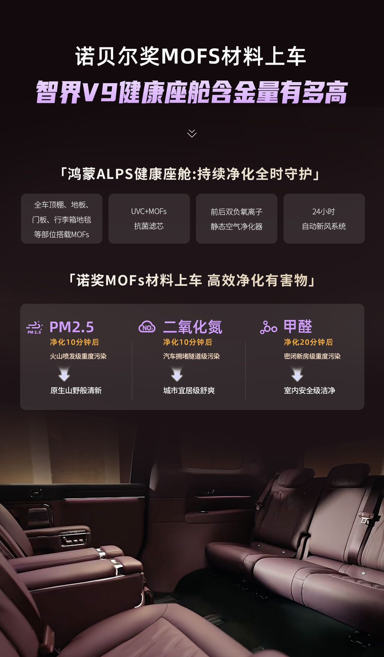 天冷为什么老打到臭车 对我们这些家庭用户来说,车内健康真的比啥都重要,尤其是家里有老人、小孩和孕妇的,一上车就怕有刺鼻味道。智界V9是真的站在我们普通人的角度考虑,不计成本用上诺贝尔化学奖得主研发的MOFs材料。这种材料不仅能吸附PM2.5、五苯三醛等有害物还能将醛类物质降解成无害的水和二氧化碳,全家人一上车就能呼吸到清新干净的空气,不管是周末出去玩,还是长途回老家,都像坐在移动森林氧吧里一样舒服。余承东称智界V9健康座舱很到位