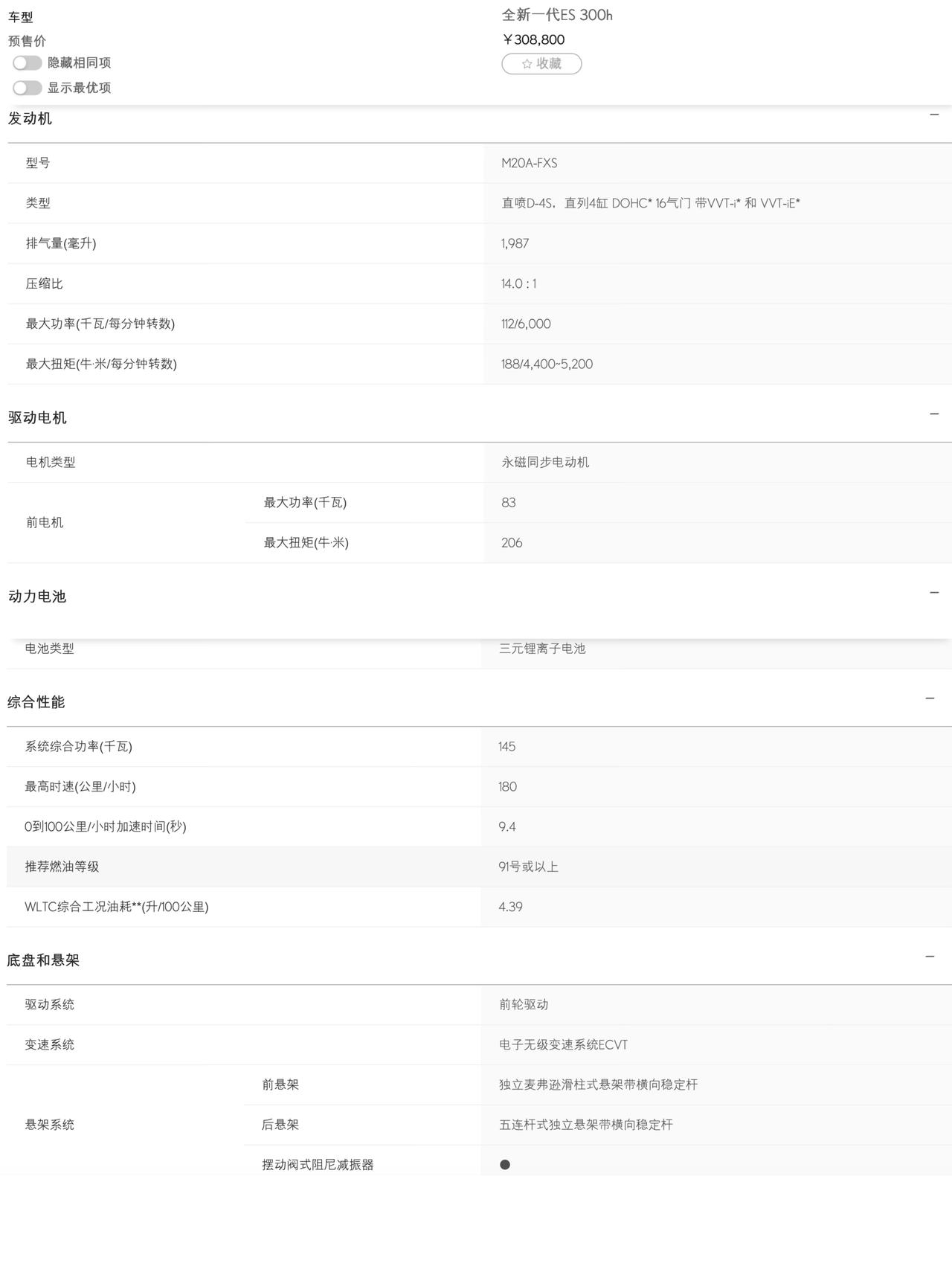 全新雷克萨斯ES开启预售,30.88万起,提供1.2万与3万的选装套件。 参数方面,新车长宽高分别为5140/1920/1550mm,轴距2950mm。首发300h版本,2.0L自吸发动机112kW,驱动电机83kW,系统综合功率145kW,0-100km/h加速仅需9.4秒! 看了看配置表,实在没想出不花2字头买宝马5系的理由。【来自懂车帝车友圈】