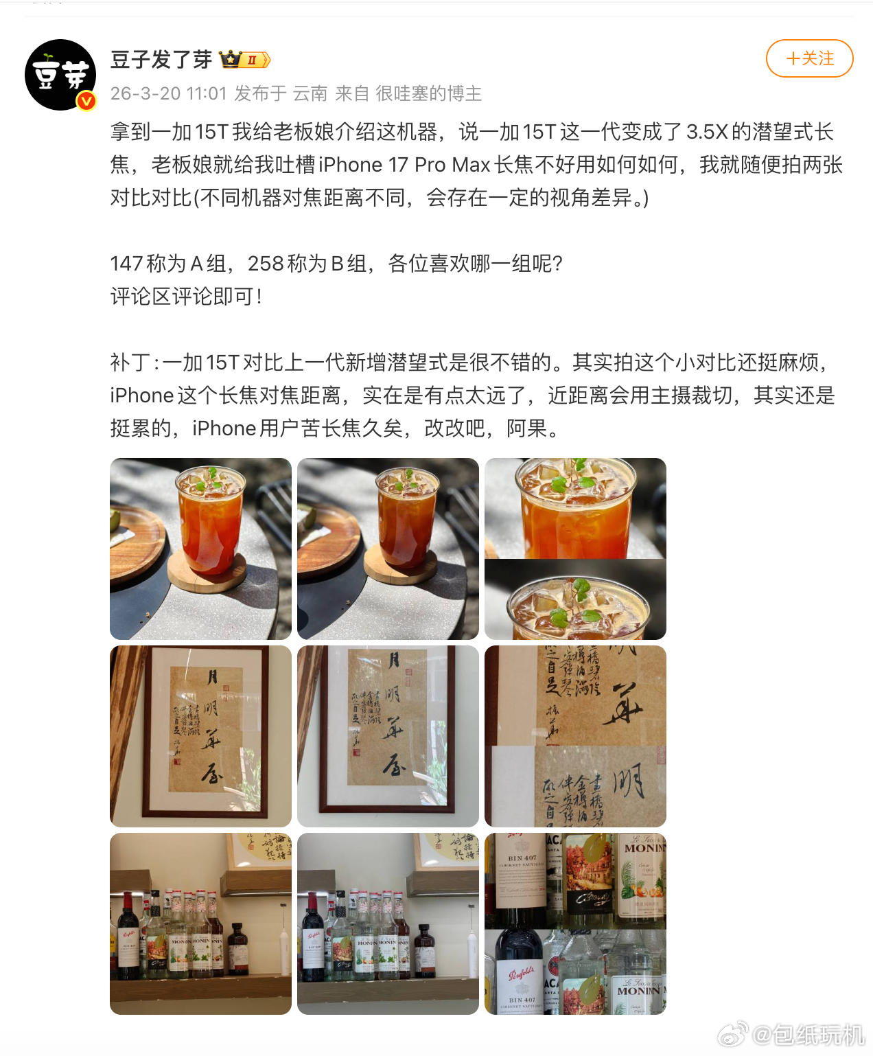 别看一加15T小小个,影像还真有点东西,有博主发了一加15T的样张,潜望式长焦和直立长焦一对比就高下立判了。一加15T这颗3.5倍潜望长焦不只是焦距更长,背景虚化的质感,画面通透感,还有解析力都拉开了很大的差距,所以小屏手机能给到潜望式长焦诚意真挺足的。而且还有LUMO凝光影像系统、无影抓拍、4K超清实况,这些旗舰上有的,这次一加15T都有了,以后别再说影像是小屏手机的短板了。