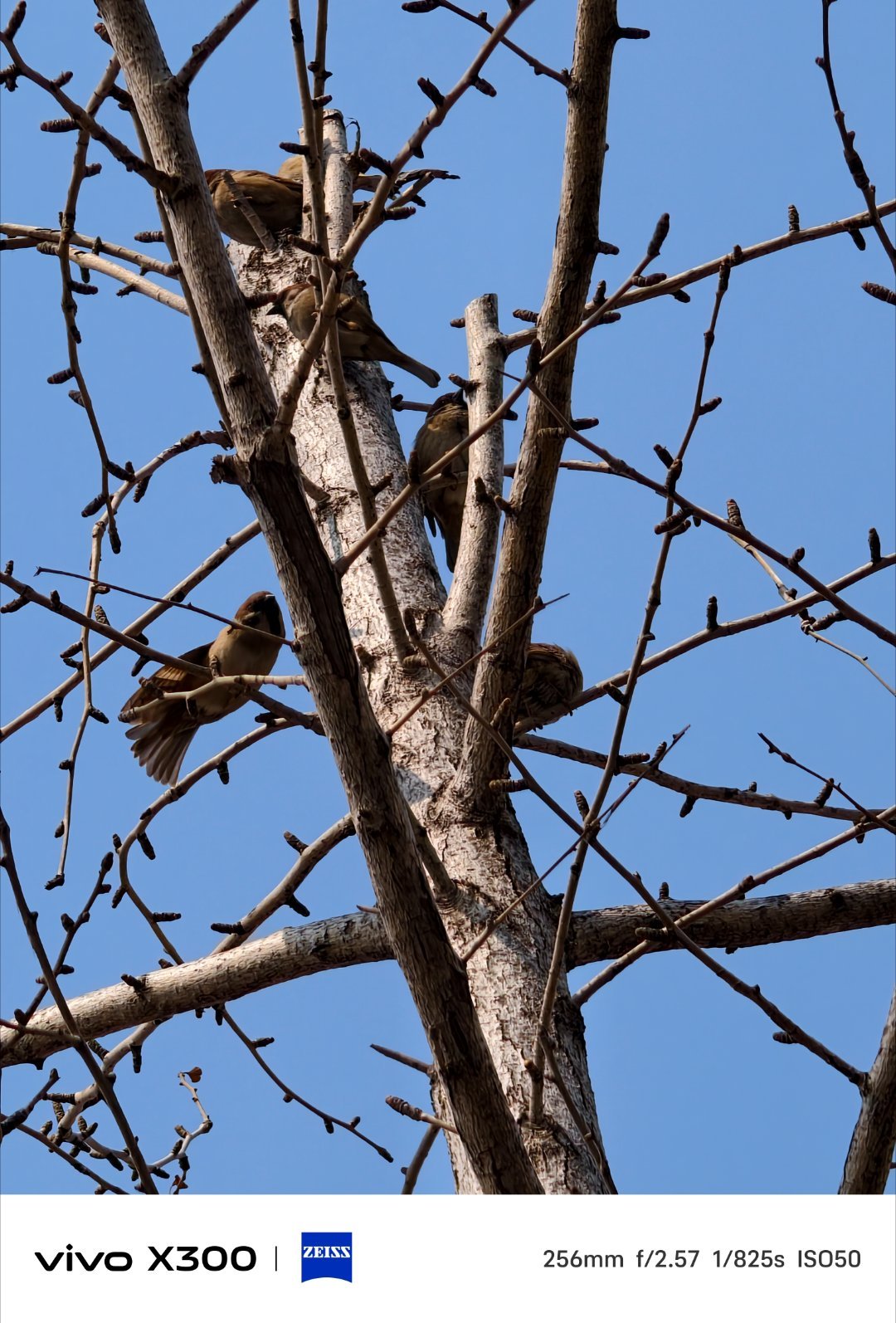 vivo 今天去接孩子放学,突然听到鸟叫,抬头一看一家人在树梢晒太阳呢?这是好幸福的一家人。手机随手拍鸟