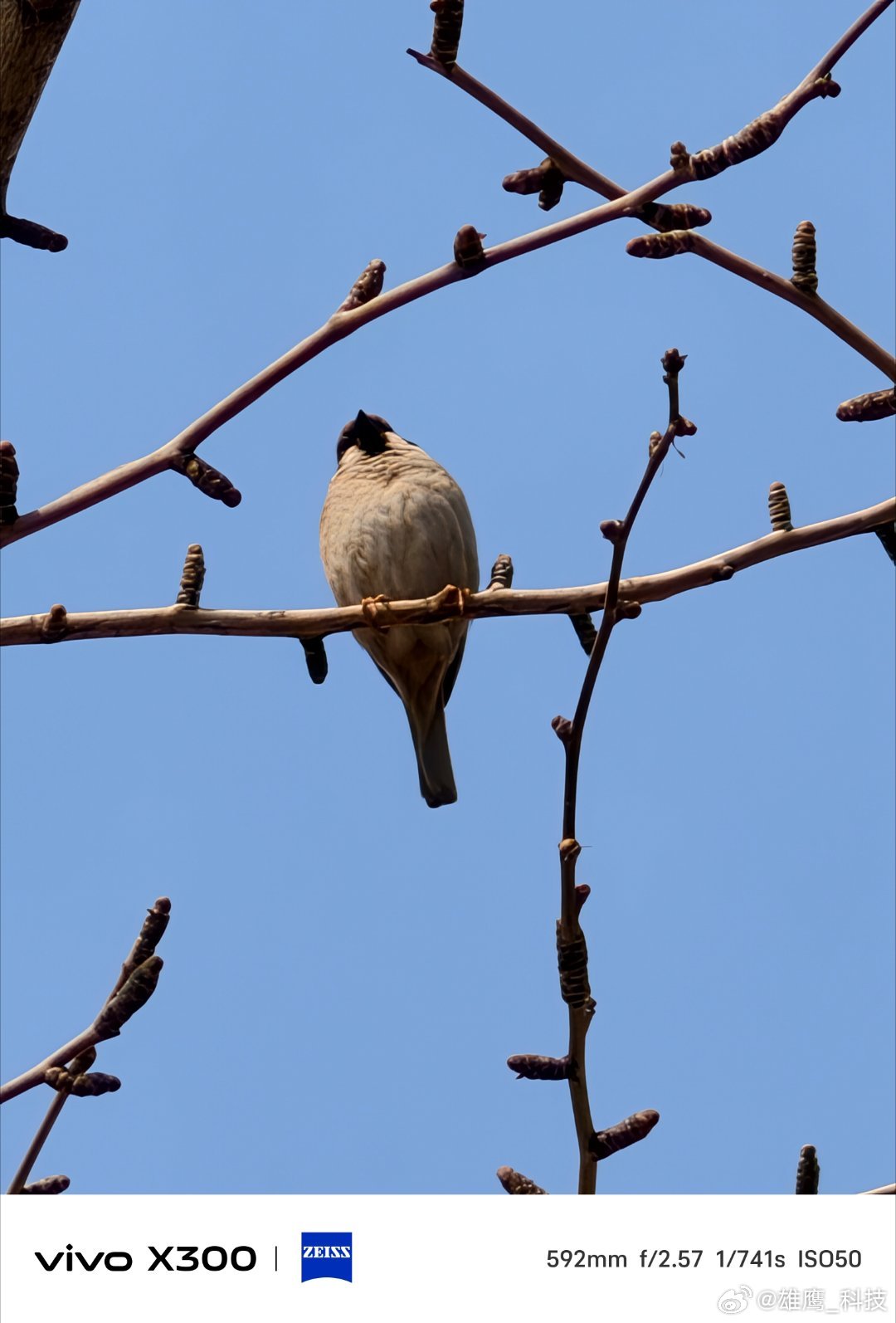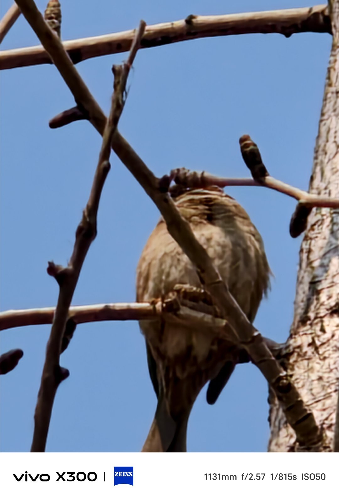 vivo今天去接孩子放学,突然听到鸟叫,抬头一看一家人在树梢晒太阳呢?这是好幸