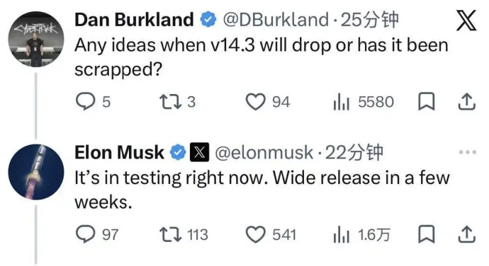 特斯拉FSDV14.3即将发布家人们,特斯拉FSD V14.3有新消息啦!马斯克确认它已进入内部测试,预计几周后推送。这版本可是自动驾驶“关键拼图”,能提升复杂路况决策力,目标把安全性提至人类2 - 3倍,还可能用于无人驾驶出租车,太让人期待!