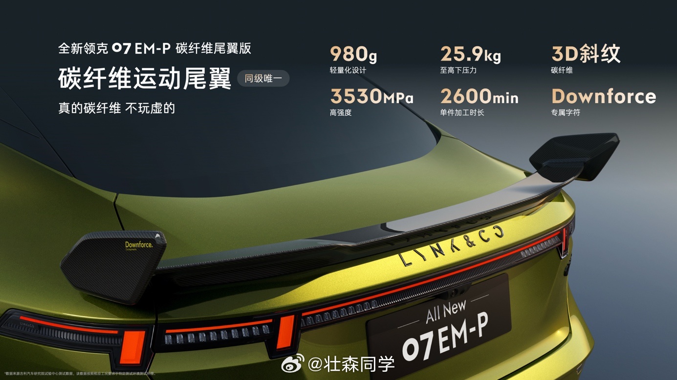 性能有了,智能跟上了,连潮流属性也拉满了,这台07 EM-P碳纤维尾翼版,你们觉得带不带感?领克07碳纤维尾翼版带感登场