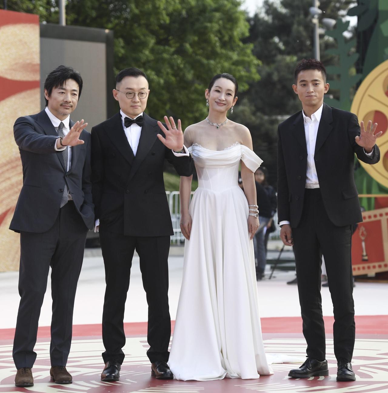 被48岁秦海璐的这个状态惊艳到了,她是一个越老越有气质的女演员,穿一身白色抹胸礼服裙,不用化妆也很惊艳,大气自然,集气质和演技于一身。 左边的这个头发三七分的男演员看着很眼熟,他的演技很好,大家知道他是哪个吗?