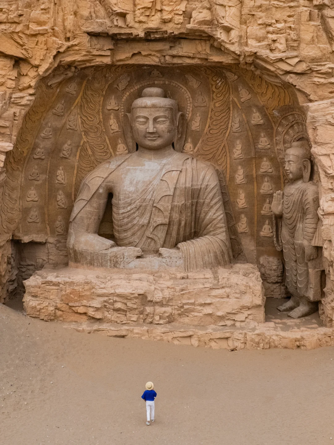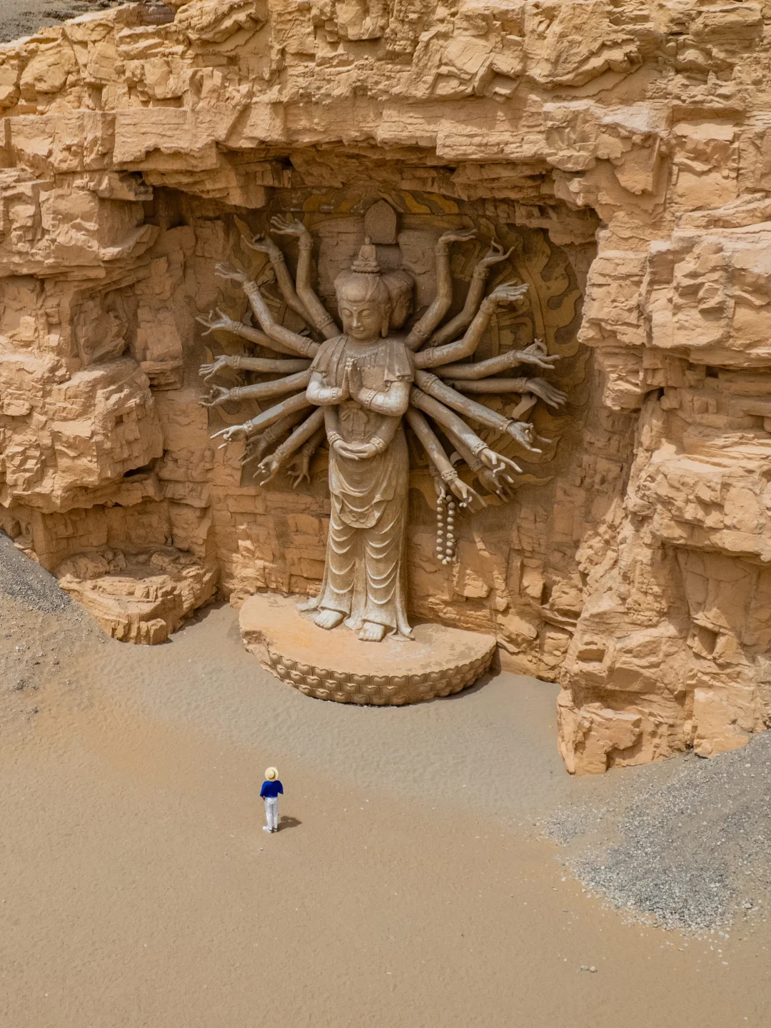 卧佛+千手观音+希腊柱同框,仰拍显震撼,远景拍戈壁氛围感拉满🌪️