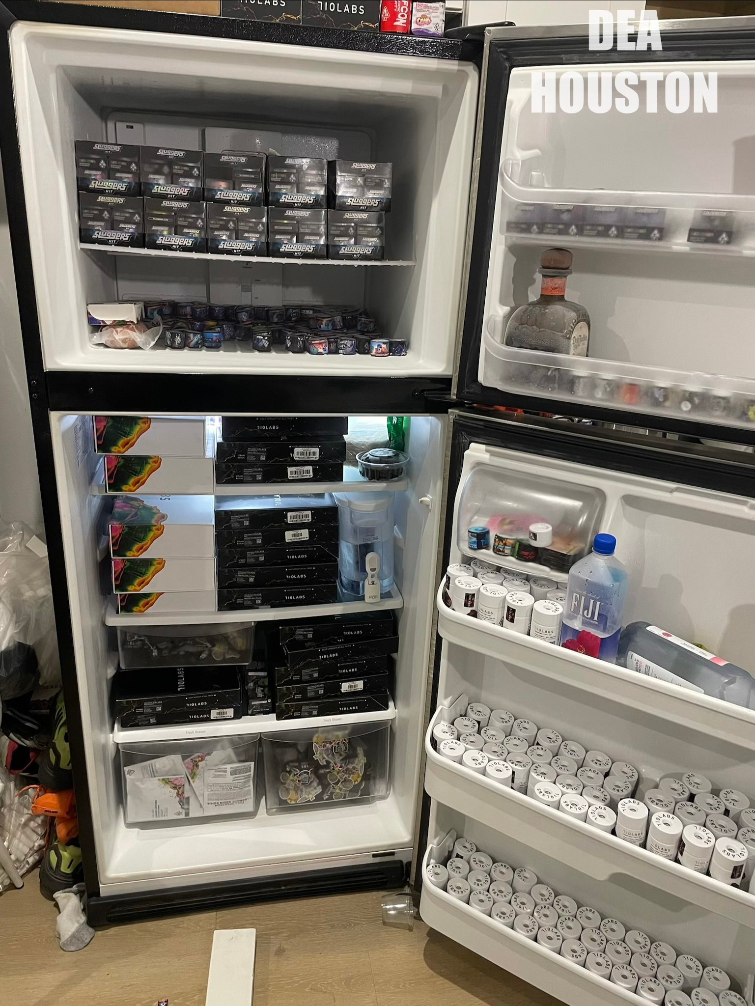 小毒贩的大冰箱!¹ 坐标:休斯顿。² 42磅大麻花、3磅魔幻蘑菇和可卡因、4000多支加料电子烟,还有75磅大麻蜡。这玩意是大麻花、大麻叶的浓缩物,THC含量可以高达百分之好几十!一小滴融化后的烟劲就很大!³ 琳琅满目,开在社区。科学人医疗社会史