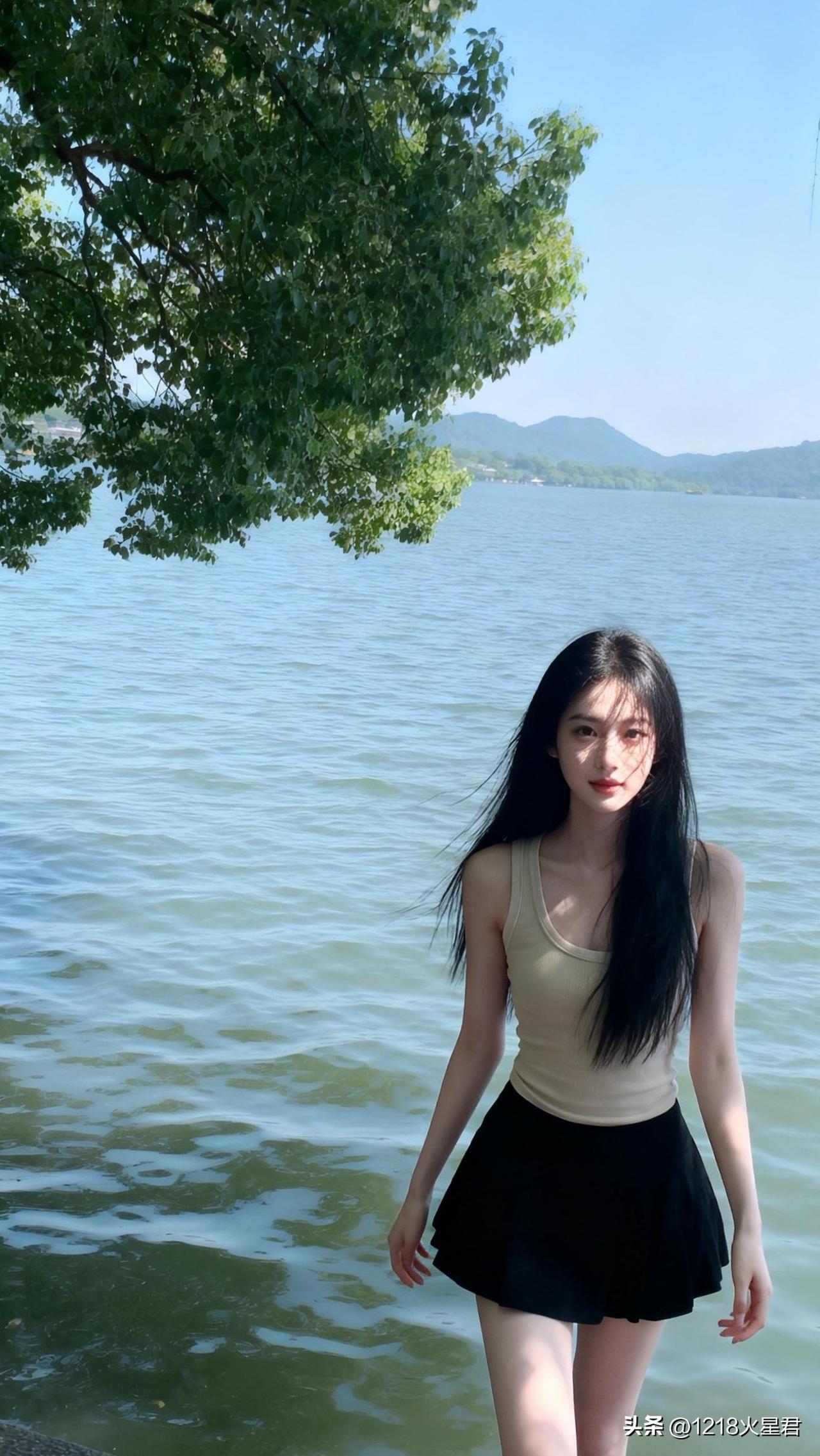 晒出女性魅力头发干净整洁,有个合适的发型。
