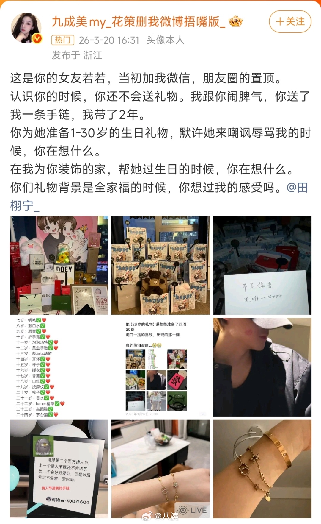 田栩宁今晚韩束直播蛙趣,666,没事人一样呢
