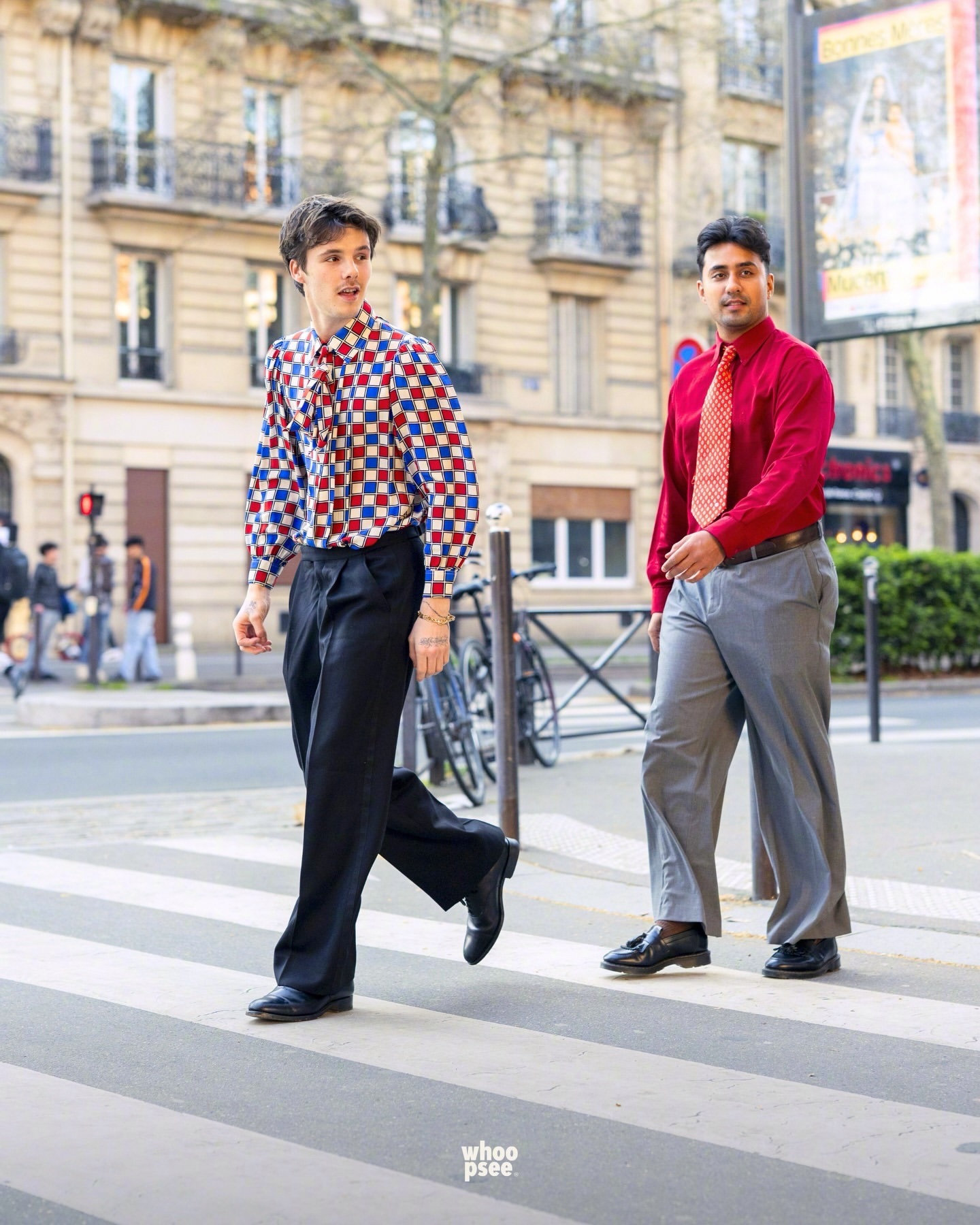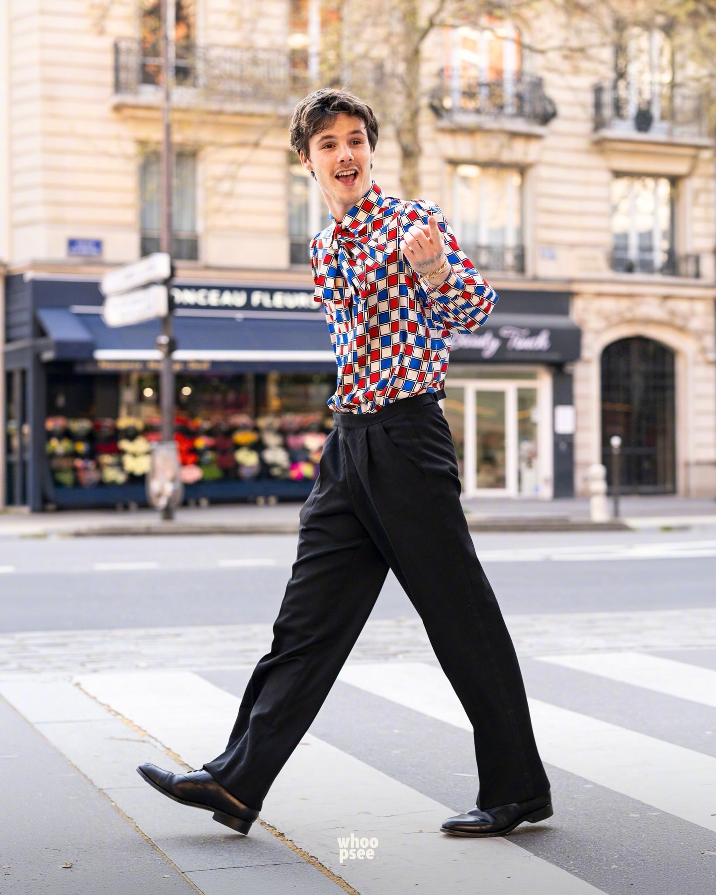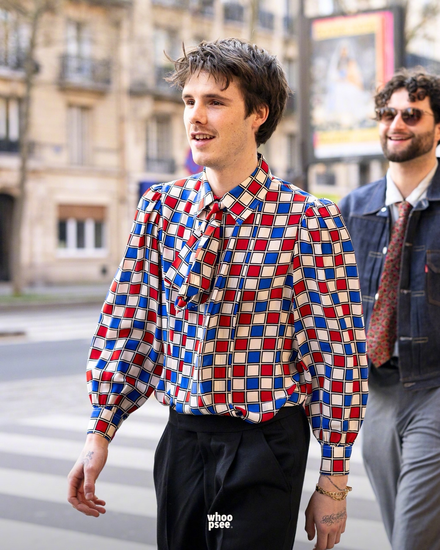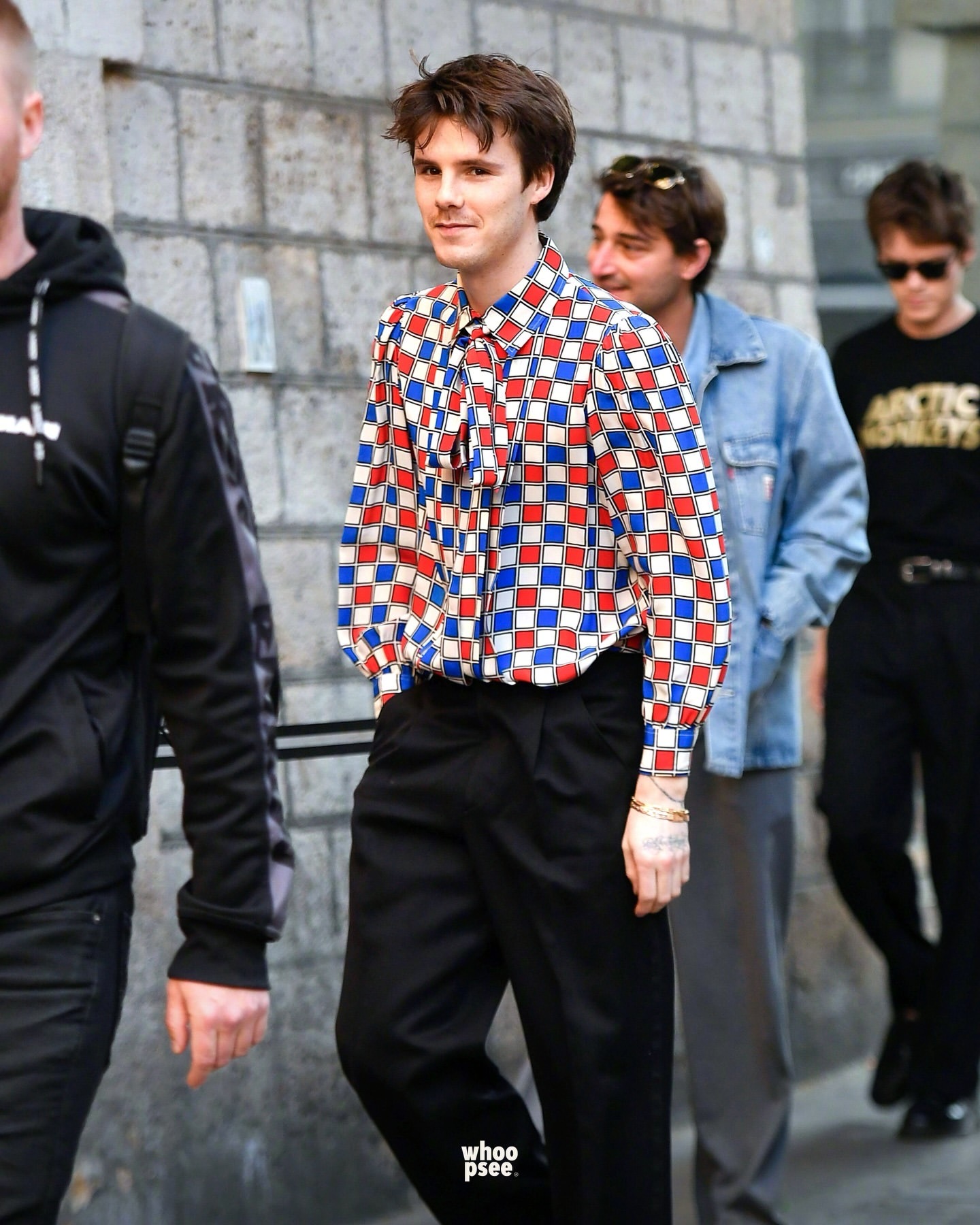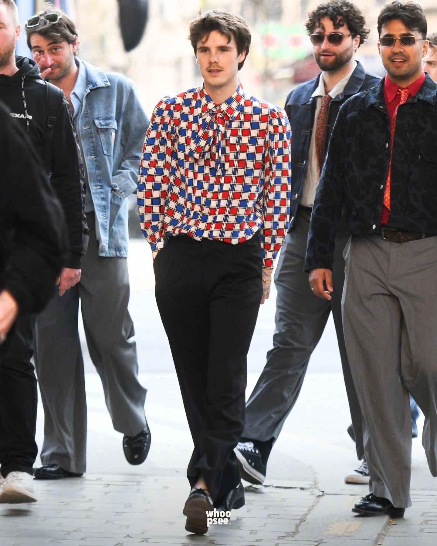 老三克鲁兹贝克汉姆和他的乐队成员们现身巴黎巡演,四位还现身人行道模范了一下英国摇滚乐队The Beatles的第11张录音室专辑“Abbey Road”。克鲁兹的造型简约但带着叛逆感:丝质衬衫,泡泡袖设计,饰有蓝红棋盘格图案,并在领口点缀了蝴蝶结。裤子则是剪裁利落、版型宽松的黑色西装裤,搭配优雅的皮鞋。老三正式开启他挚爱的音乐之旅了,现已被Republic Records签约。该唱片公司旗下拥有众多获得多白金认证、屡获大奖的传奇与超级明星艺人,如 Ariana Grande、The Weeknd、Taylor Swift、Nicki Minaj 等等。