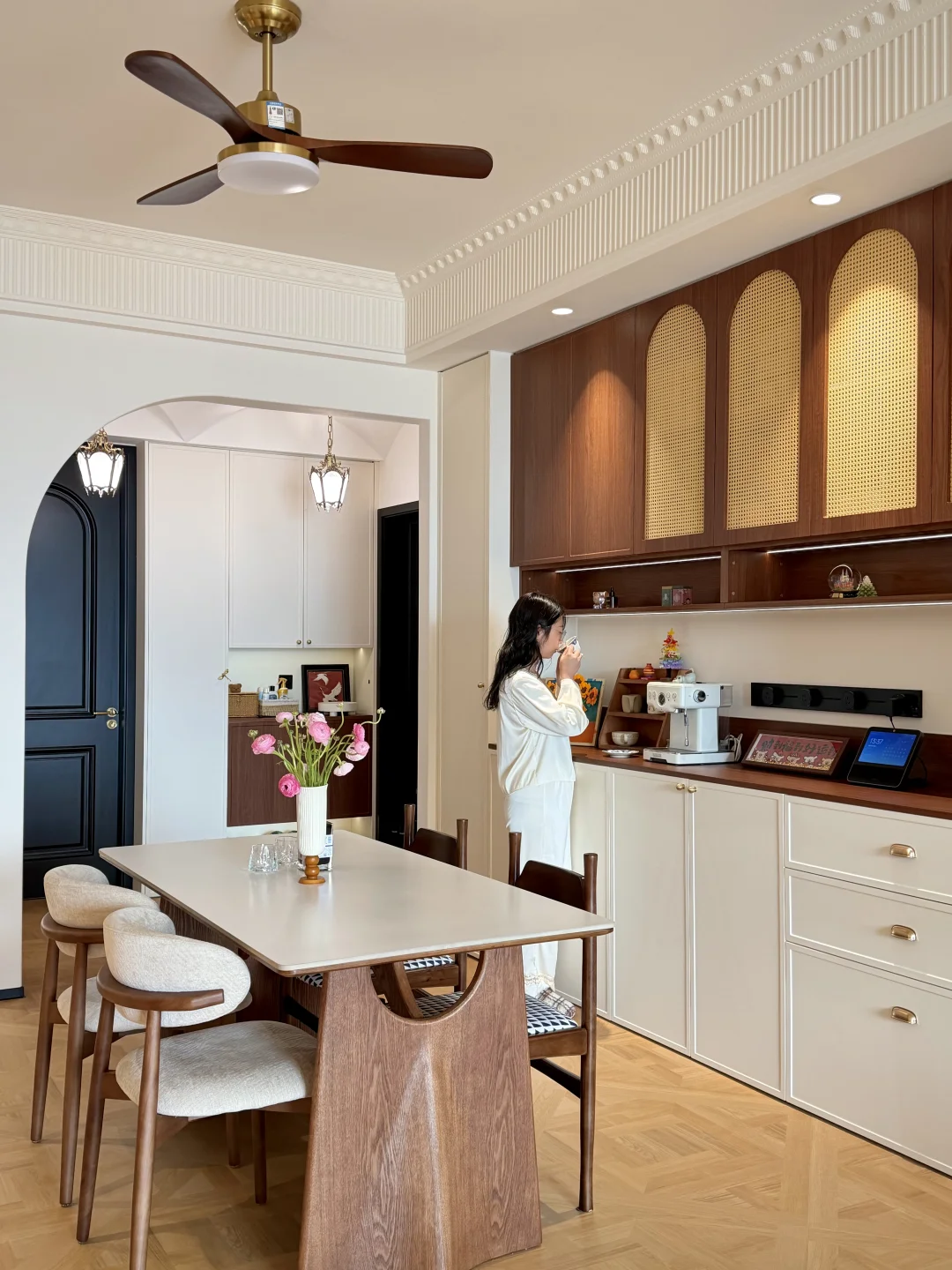 暖白和棕色的搭配贯穿全屋