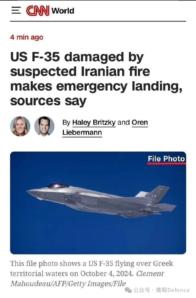 截至撰文时,尚未看到美国政府官方回应,但CNN两名专注于中东和美军事务的资深报道记者,援引五角大楼多名消息人士的话报道称,美军确实有一架F-35战斗机疑似遭伊朗防空火力击中,被迫紧急着陆,飞行员情况稳定,但CNN没有提及更多详细信息,包括这架F-35战斗机的具体受损情况以及在哪里紧急着陆等,也没有看到相关照片或视频。