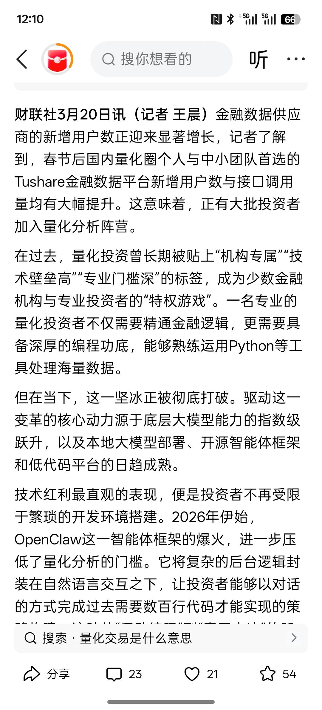 大批投资者加入量化阵营,量化投资迎来“平权”时代了?大多数都去搞量化交易的,这个市场还能走到什么时候?量化都是靠算力。目前有AI人工智能都去搞高频交易,估计这些量化工具都成了这些人的特权专用属性!做这些散户,普通投资者没有这些量化工具,在这个市场怎么能够生存下去?他们的利益又怎么得到保障?有很多散户在这个几乎是亏钱的!