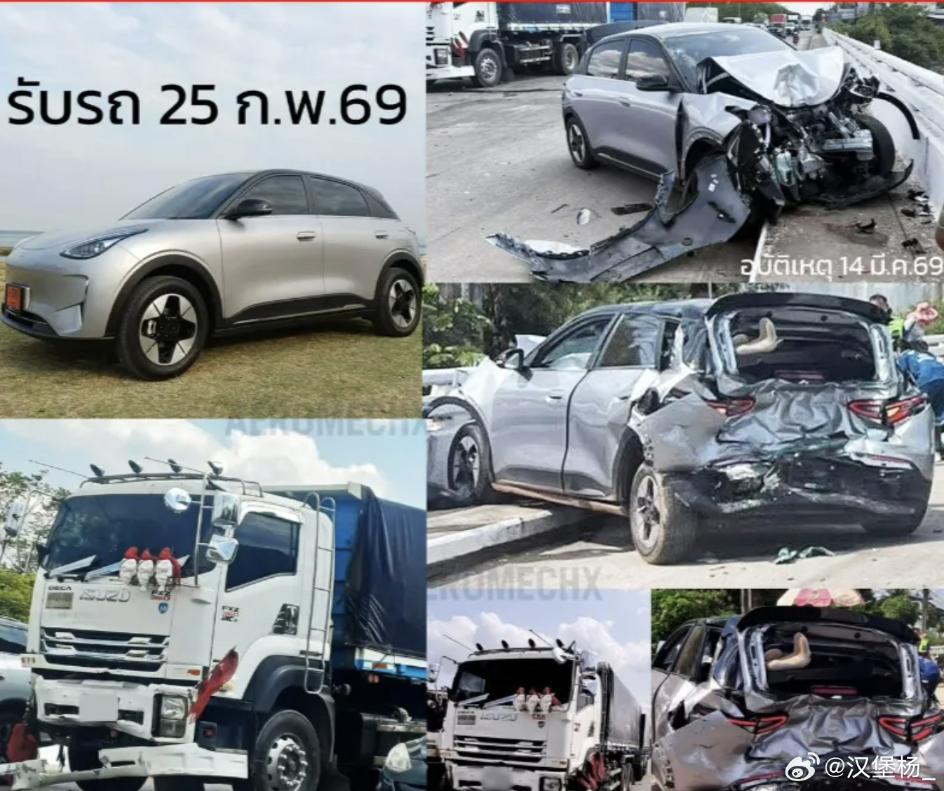 这还没完,还有个最近泰国的事儿,同样是吉利星愿,遭遇后方满载18轮重卡追尾挤压,然后乘员舱依旧保持完整,安全气囊在碰撞瞬间正常展开保护车内人员。真的,不愧是国内25年卖的最好的车。