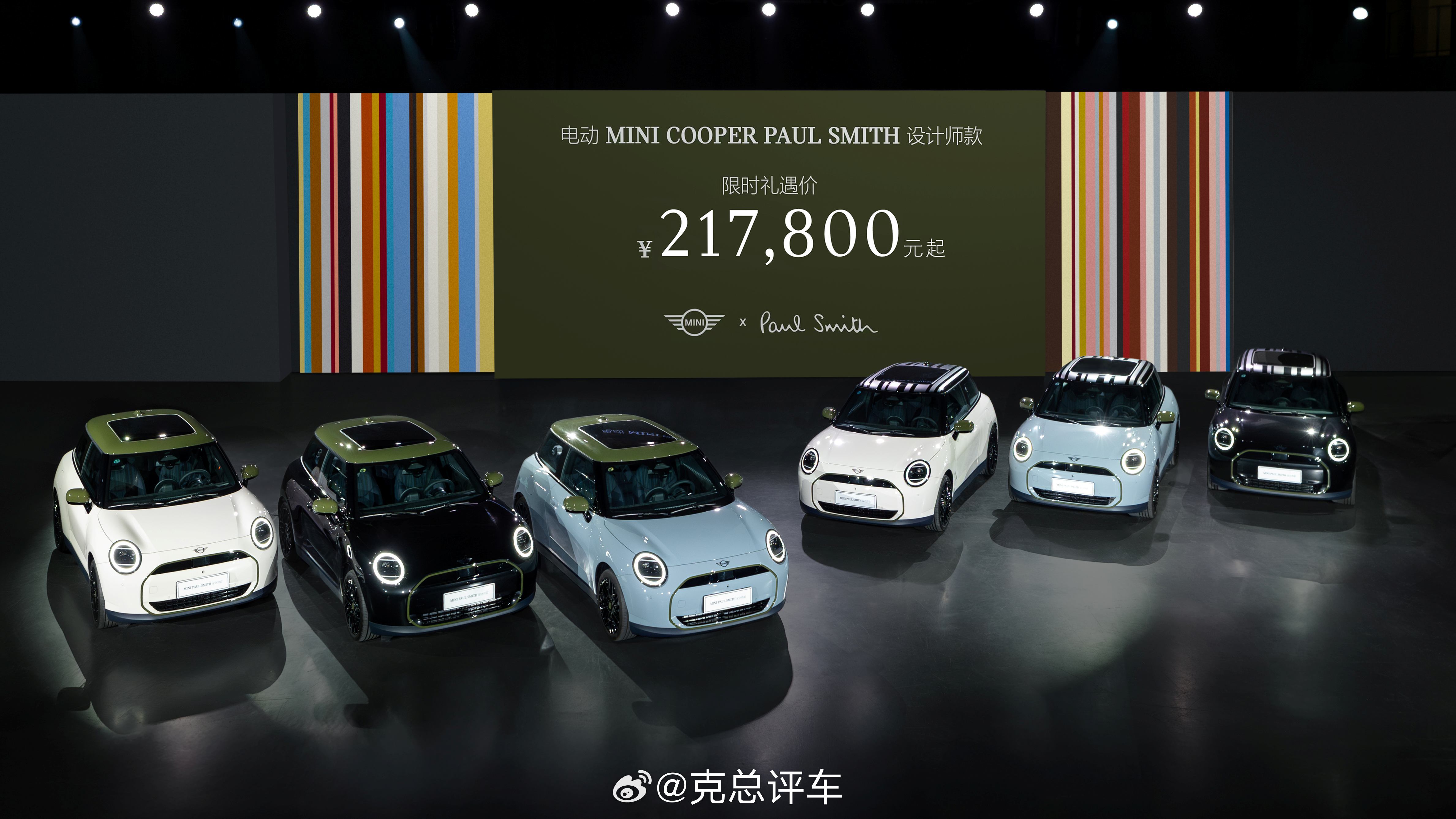 英伦时尚与经典小车再度合体,电动MINI COOPER PAUL SMITH设计师款中国上市,21.78万元起,3月31日前订车享购置税清零等限时福利。
