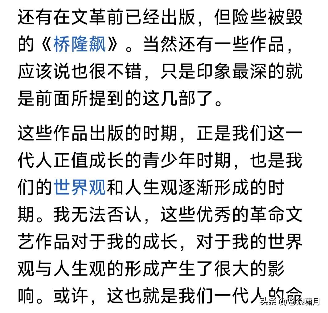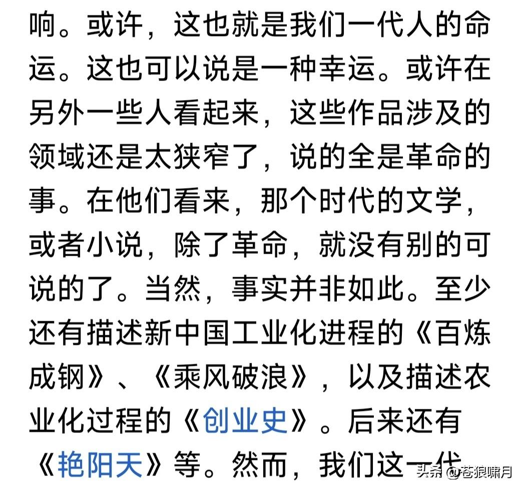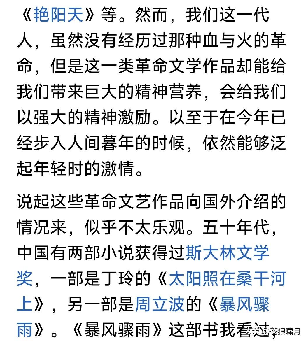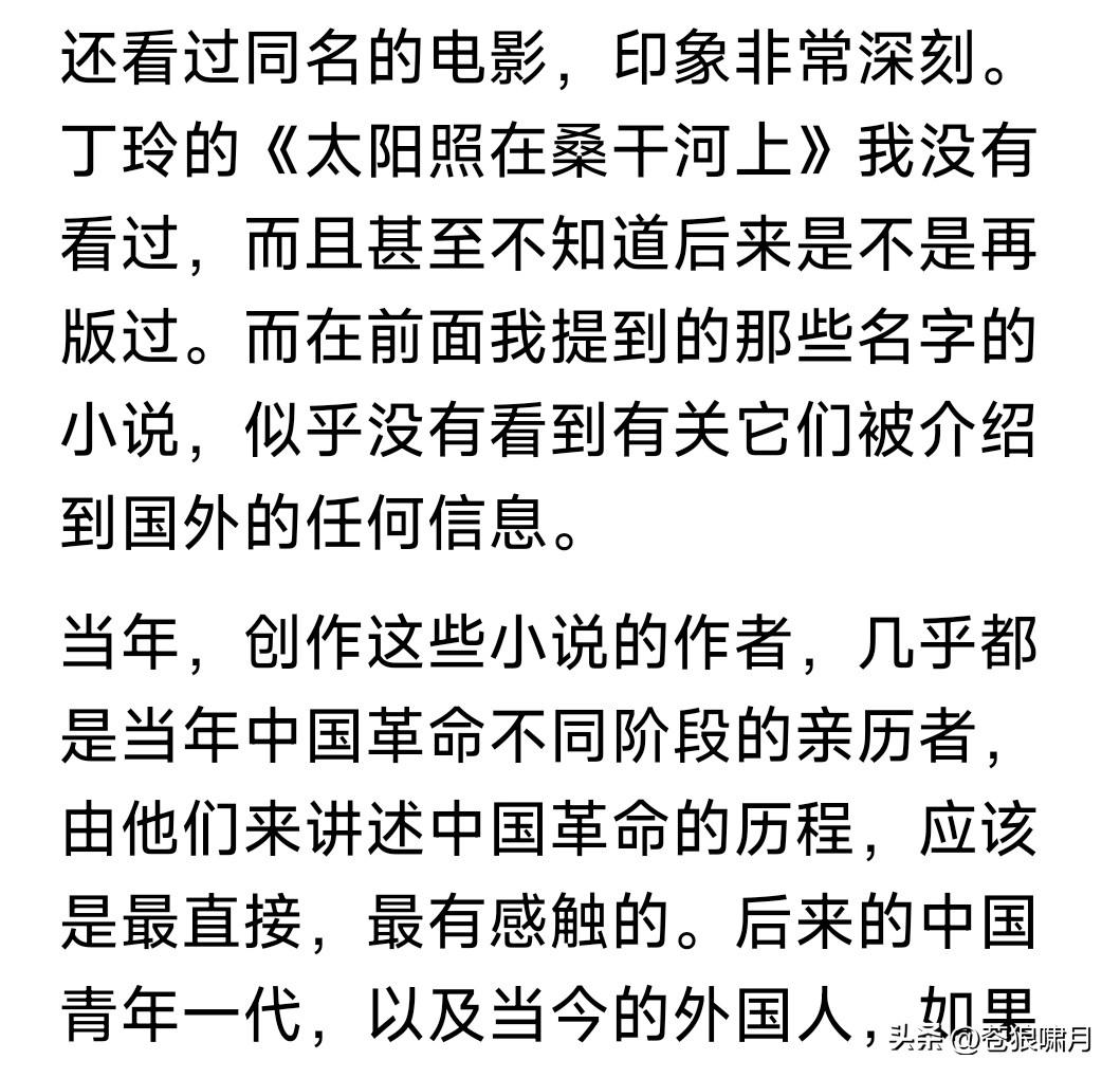 这个老胡的观点,苍狼不赞同。他说:向全世界推介中国的革命文艺作品,很有必要!虽然他的理由是,让外国人阅读这些作品,了解中国革命历史! 苍狼想说的是,有这个必要吗?“老胡”也感叹:现在似乎没有从事这方面工作的人!为什么没有?是国家不重视?非也!只说明这些作品不合时宜了! “老胡”为何会有这种想法?其实他的叙述里,已经给出了答案。他说他不喜欢鲁迅的“阿Q正传”,钱钟书的“围城”,以及80年代后涌现的作家作品! 他只喜欢“林海雪原”“铁道游击队”“青春之歌”“敌后武工队”“红岩”,后来的“创业史”“艳阳天”,还提到两部“斯大林文学奖”作品:“太阳照在桑干河上”和“暴风骤雨”。他看过后者,印象深刻。 苍狼根据“老胡”自介,有以下感想: 1.他的头脑里还是“斗争”思维,殊不知现在是法治社会,有问题靠法治解决,而不是靠“斗争”!“斗争”只会导致社会群体对立,阻挠国家持续发展! 2.他喜欢的那些作品,是“斗争”年代产物。当时具有合理性,作家也有才华,作品也很生动,但缺乏思想性。改革开放后退出历史舞台是时代取舍。新一代作家作品脱颖而出是顺应潮流! 3.他建议把“革命文艺向世界推介”,是一厢情愿,也是思想落伍的表现。当今世界各国,有几个还在搞“阶级斗争”?除了非洲南美中东某些贫穷国家,还有谁呢?他们会阅读这些作品吗? 4.苍狼不知这位“老胡”,过去做什么工作?现在应该是退休人员?闲来无事,网络发表一些观点无可非议,但拿这些过时观点说事,觉得好意思吗? …………