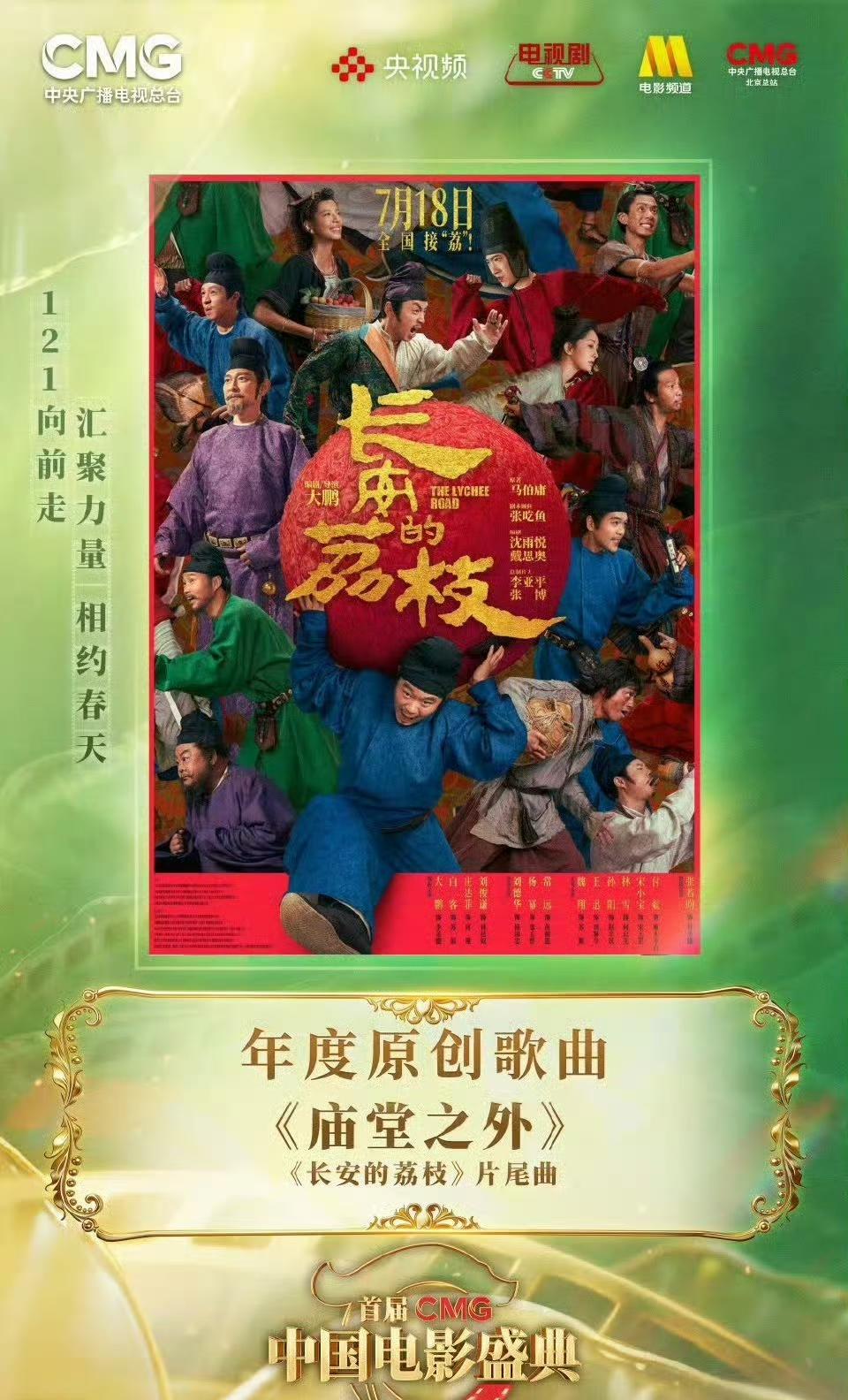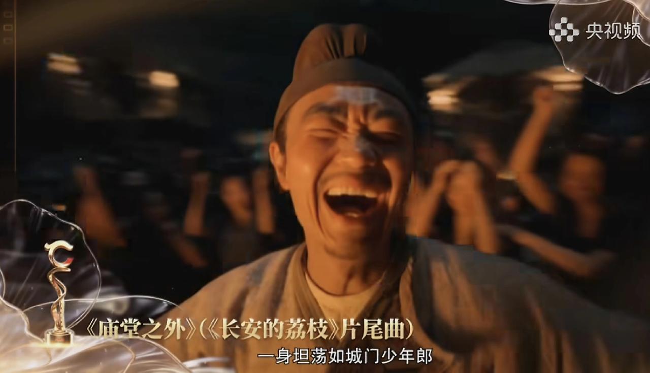《庙堂之外》获中国电影盛典年度原创歌曲,唐恬上台第一句话就是感谢演唱者陈楚生,这是伯牙子期的惺惺相惜,优秀的词曲要有优秀的演唱者来表达,这首歌获得这么大的成功,词曲和演唱缺一不可! 大鹏在台下笑得眼里泛了泪光,仿佛当初那个城门少年郎,这首歌和主人公太相配了,又何尝不是陈楚生的人生写照,不愧是一部优秀的电影歌曲,这个奖拿的值得! 庙堂之外