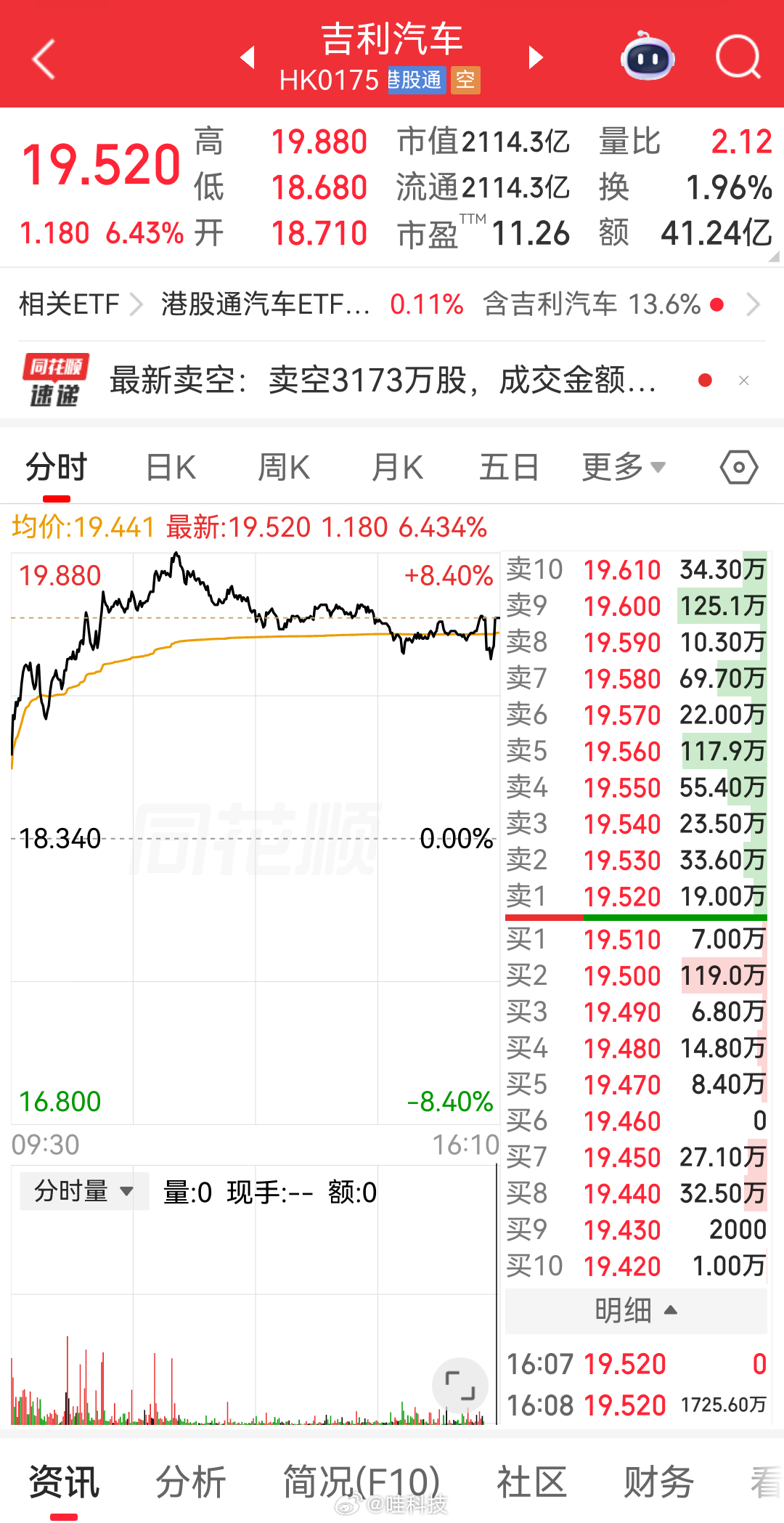 吉利汽车这波股价大涨太亮眼了,7.8%的涨幅领跑港股汽车股,市值冲至2100亿港元创年内新高,说到底还是业绩给的底气。2025年3452亿营收、144.1亿核心净利润,营收利润双增还实现利润增速超营收,这份高质量增长摆在眼前,市场自然用脚投票。财报刚发没两天,麦格理、交银国际等一众机构就扎堆喊买,还纷纷上调目标价,最高给到32.19港元,能被机构一致看好,足见吉利的长期发展潜力被实打实认可了。