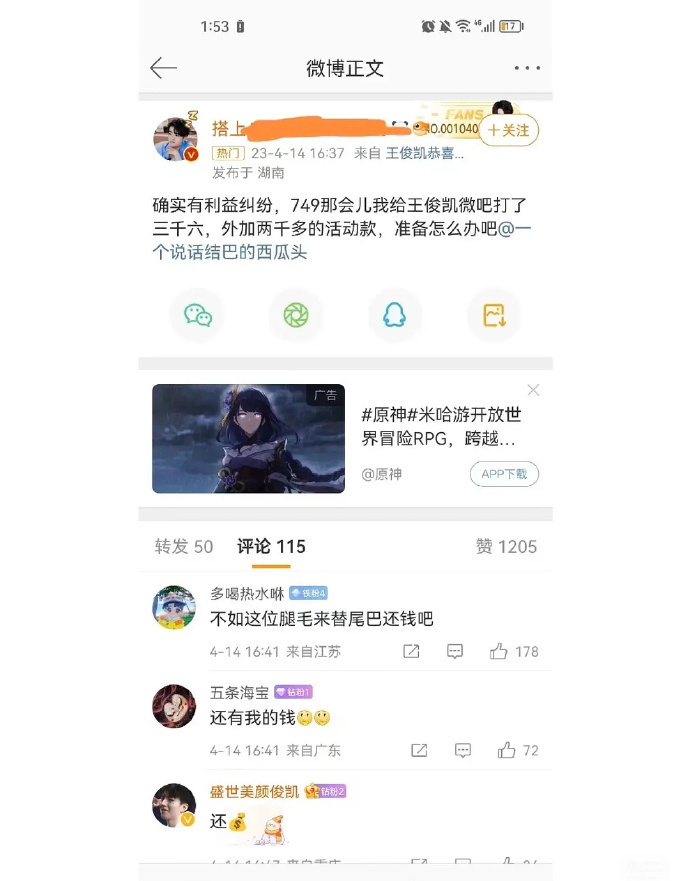王俊凯大粉工作室的749集资款已消失。